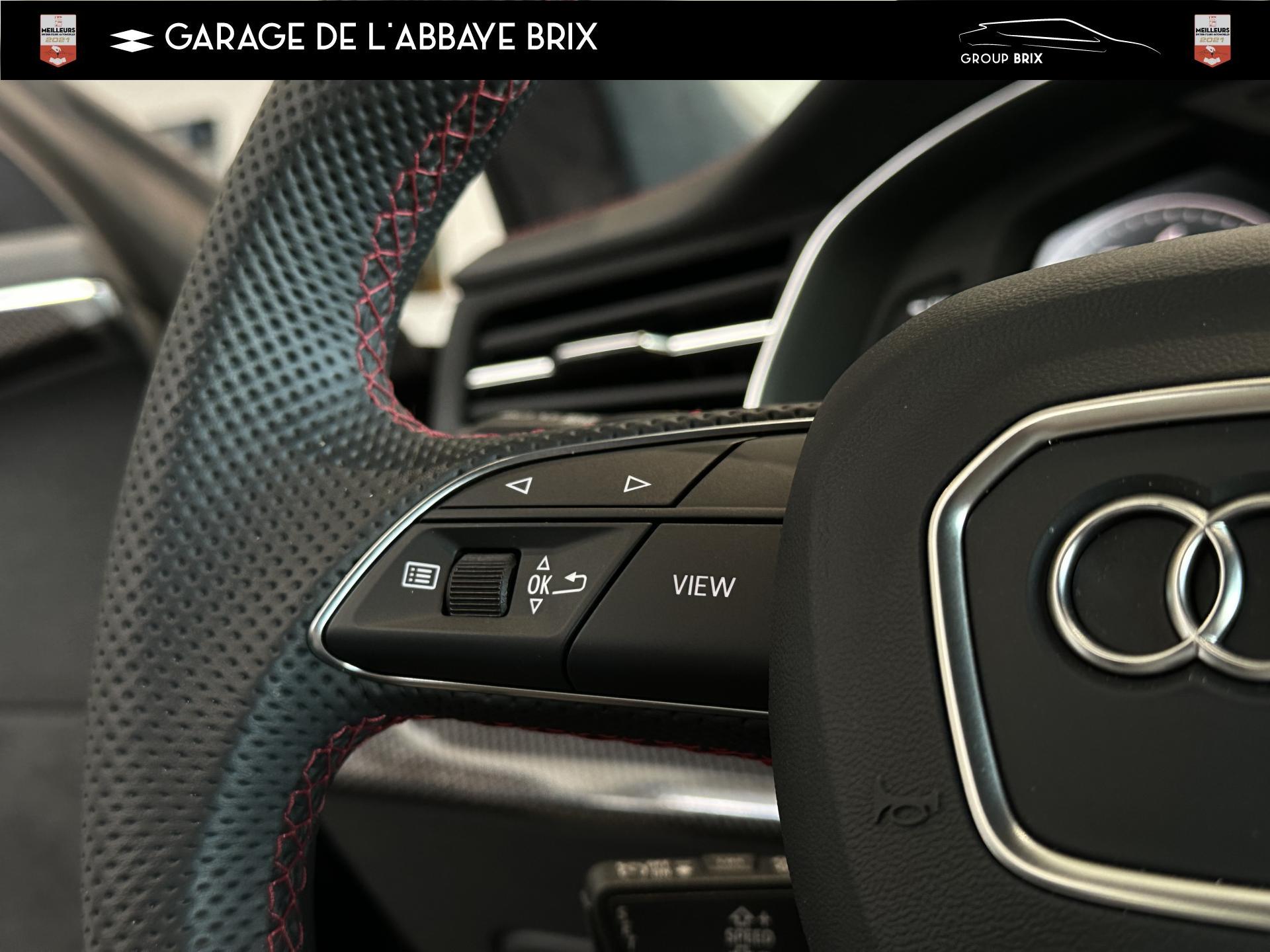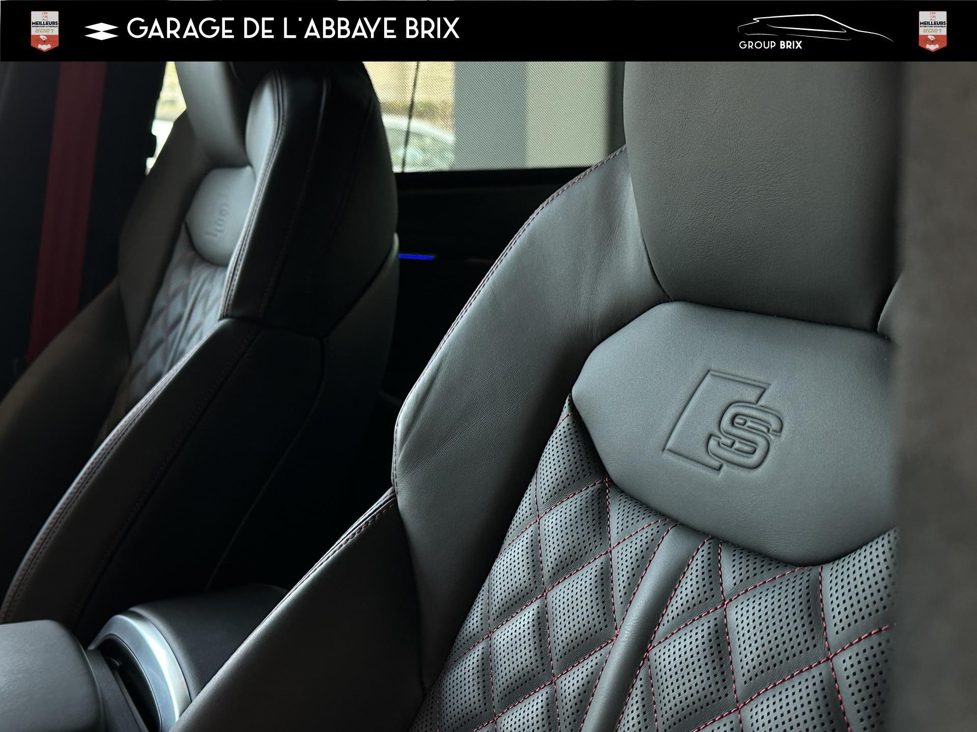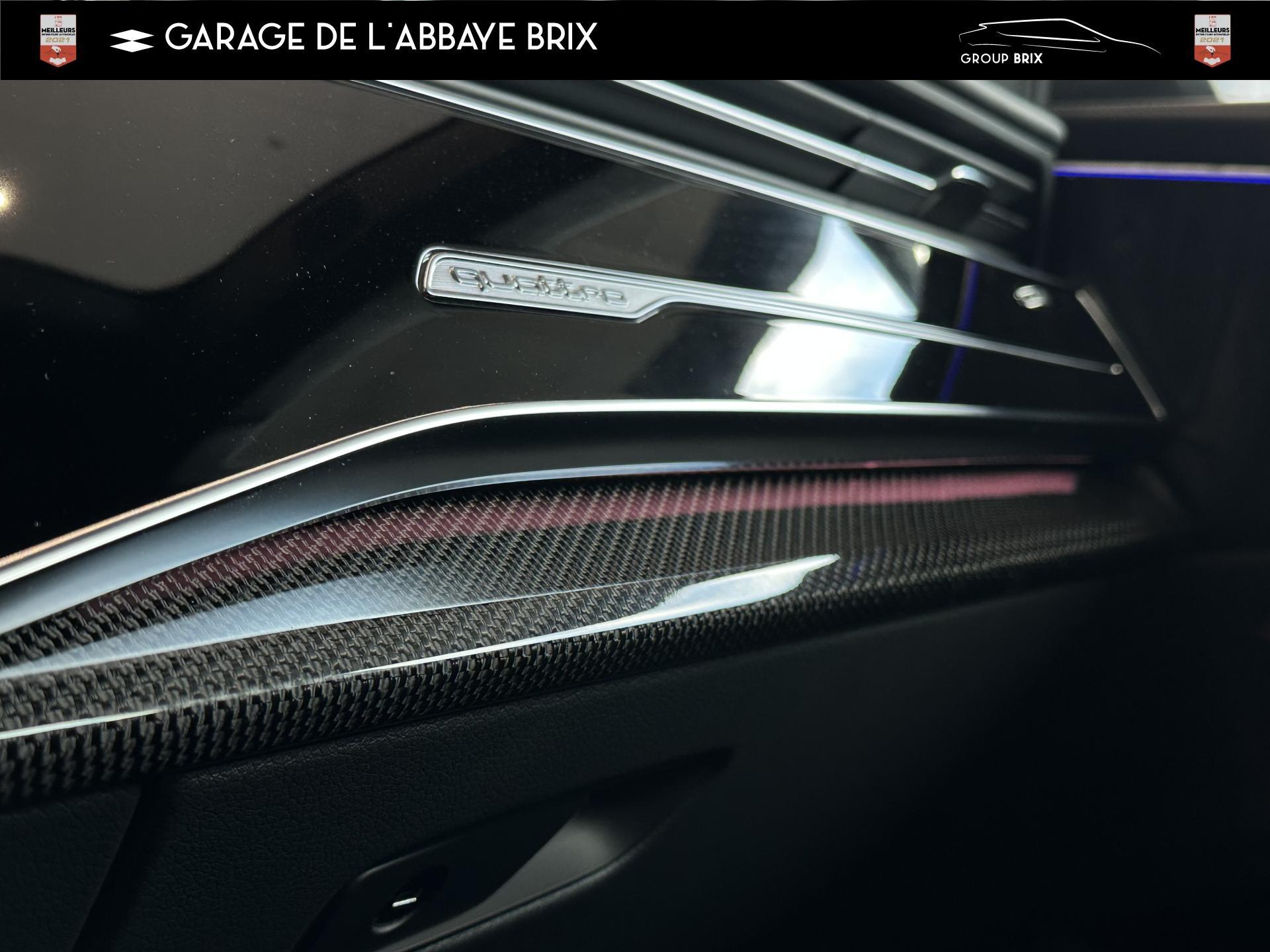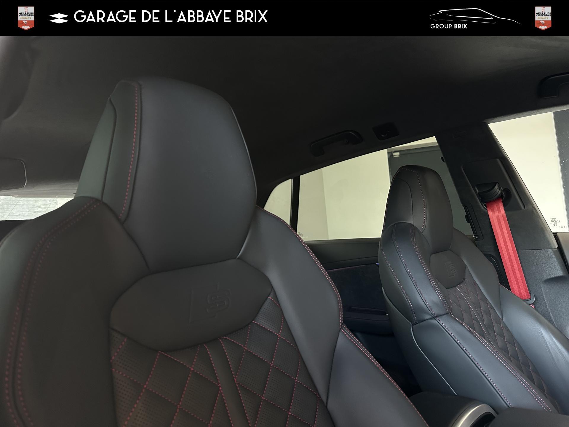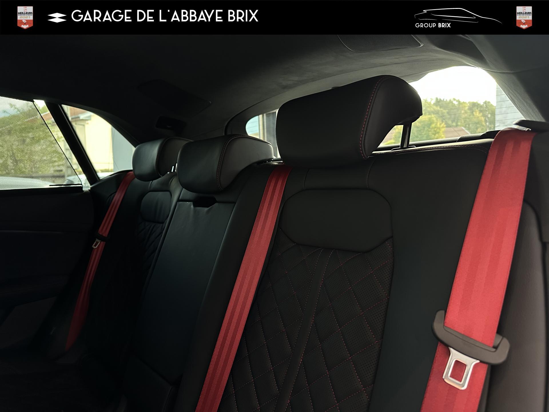 Equipement de recharge - 76H Câble de chargement mode 3 type 2 3 32A 70I Câble de charge pour chargeur ''e-tron compact'' ES3 Prise de recharge CA type 2Autres FT3 Assistant aux manoeuvres de stationnement Plus 1Z2 Augmentation du premier remplissage en carburant de série 8Y1 Avertisseur sonore deux tons YED Code contrôle interne 0N1 Direction progressive 2G1 Insert pour remplissage au carburant sans plomb FY4 Masque de calandre singlefConfort 2F1 Clé Audi connect : votre smartphone se transforme en clé numérique pour votre véhicule 4I3 Clé confort avec verrouillage du coffre à bagages commandé par capteur, sans SAFELOCK Remplacé par: Clé confort avec verrouillage du cDesign extérieur 2Z8 Badges extérieurs avec identification du modèle avec inscription de la puissance/technologie Remplacé par: Suppression du nom de modèle et de l'inscription puissance/technologie 5J1 Becquet arrière de pavillon y compris troisi&egravEclairage QQ2 Pack Éclairage Ambiance LED multicoloreInfotainment IW3 Appel d’urgence et service Audi connect incluant commande du véhicule IT3 Audi connect avec carte SIM intégrée (e-SIM) et licence d'utilisation pour 3 ans UF7 Audi music interface IU1 Audi smartphone interface 9S8 Audi virtual cockpit 9ZX Interface BlMatériaux N7K Sellerie mixte en Cuir/Alcantara Remplacé par: Cuir Valcona avec estampage S et surpiqûres losangePhares 8SQ Blocs de feux arrière à LED avec scène lumineuse dynamique et clignotants séquentiels 8K4 Feux de jour 8X1 Lave-projecteurs 8G5 Projecteurs HD Matrix LED avec scène lumineuse dynamique et clignotants séquentiels 8IT Projecteurs à LEDRoues & pneumatiques 7K1 Affichage de contrôle de pression des pneus 1PR Écrous de roues antivol avec indicateur de desserrage d’écrous C7F Jantes all. léger, en style à 5 branc. en V (style S), Gris Graphite, tourn. bril., 10,0J x 21, pneus 285/45 R21 RemSièges 6E6 Accoudoir central confort à l’avant 5ZF Appuie-tête à l’avant pour les sièges avant, réglables manuellement en hauteur 7P1 Appui lombaire à 4 axes pour les sièges avant à réglage électrique, horizontalSystèmes d'assistance QI6 Affichage de la périodicité d'entretien 30000 km ou 2 ans ( variable ) UH2 Assistant de maintien à l’arrêt 7X5 Assistant de stationnement 7W1 Audi pre sense basic Remplacé par: Audi pre sense rear 6K8 Audi pre sense fTechnologies et sécurité 2MA Adaptive Air Suspension Sport 4UF Airbag pour conducteur et passager avant avec désactivation de l'airbag du passager avant 4X3 Airbags latéraux à l’avant incluant système d’airbags de tête Remplacé Toits & vitres 9PA Bras et balais d'essuie-glace standard 4GF Pare-brise en verre de sécurité feuilleté athermique 5XC Pare-soleil avec miroir de courtoisie éclairé côtés conducteur et passager avant Remplacé par: Pare-soleil extensibleVolants & éléments de commande 6F7 Logos extérieurs S line 2PF Volant Sport cuir multifonction contour en cuir style 3 branches avec méplat + palettes de changement de vitesses