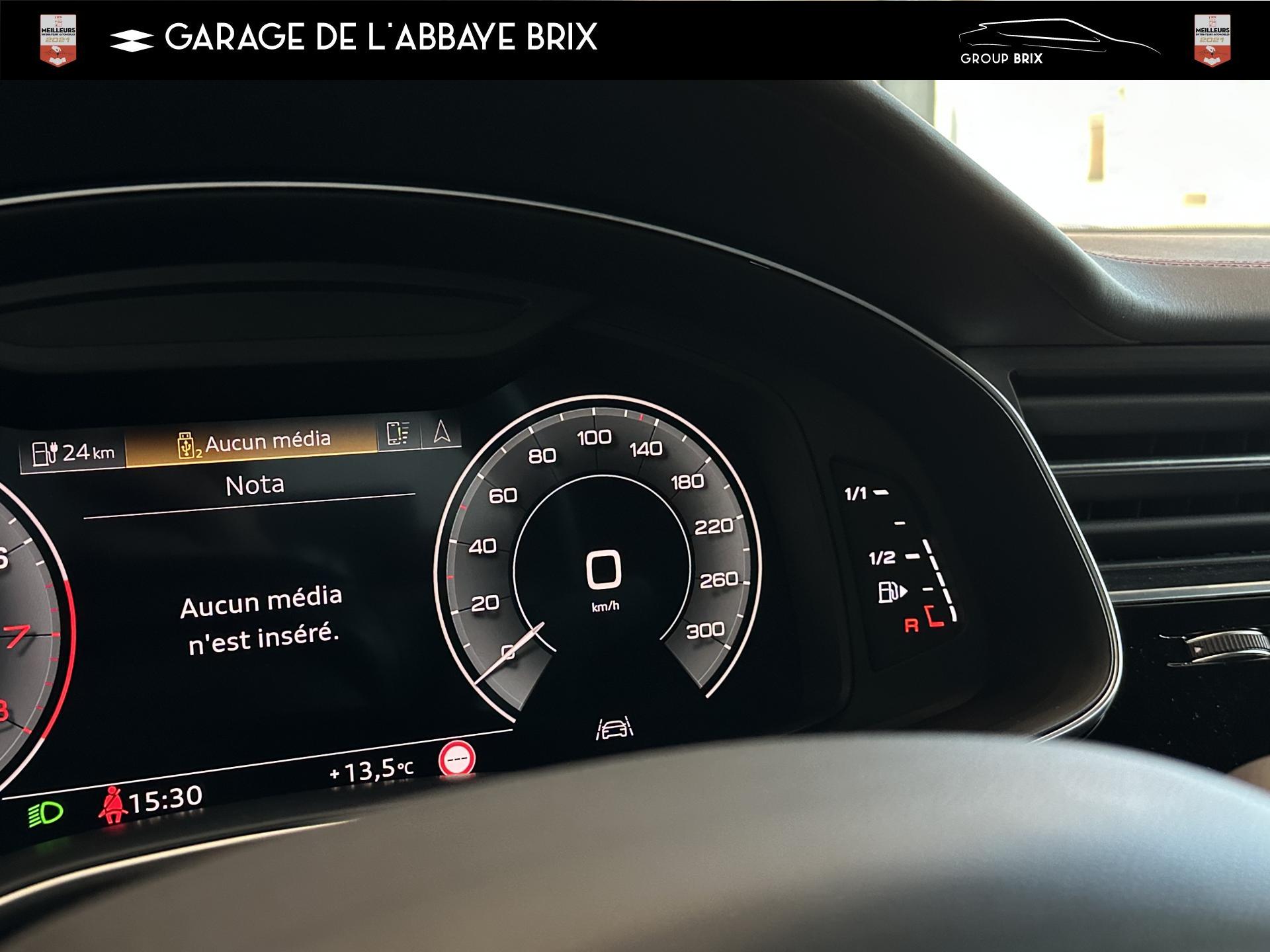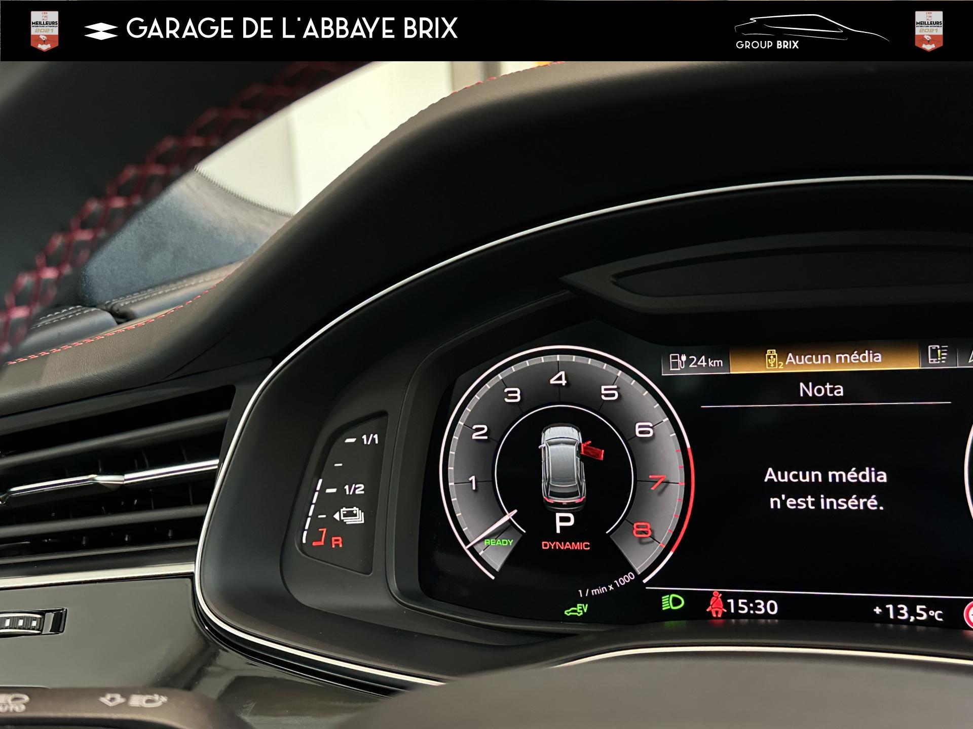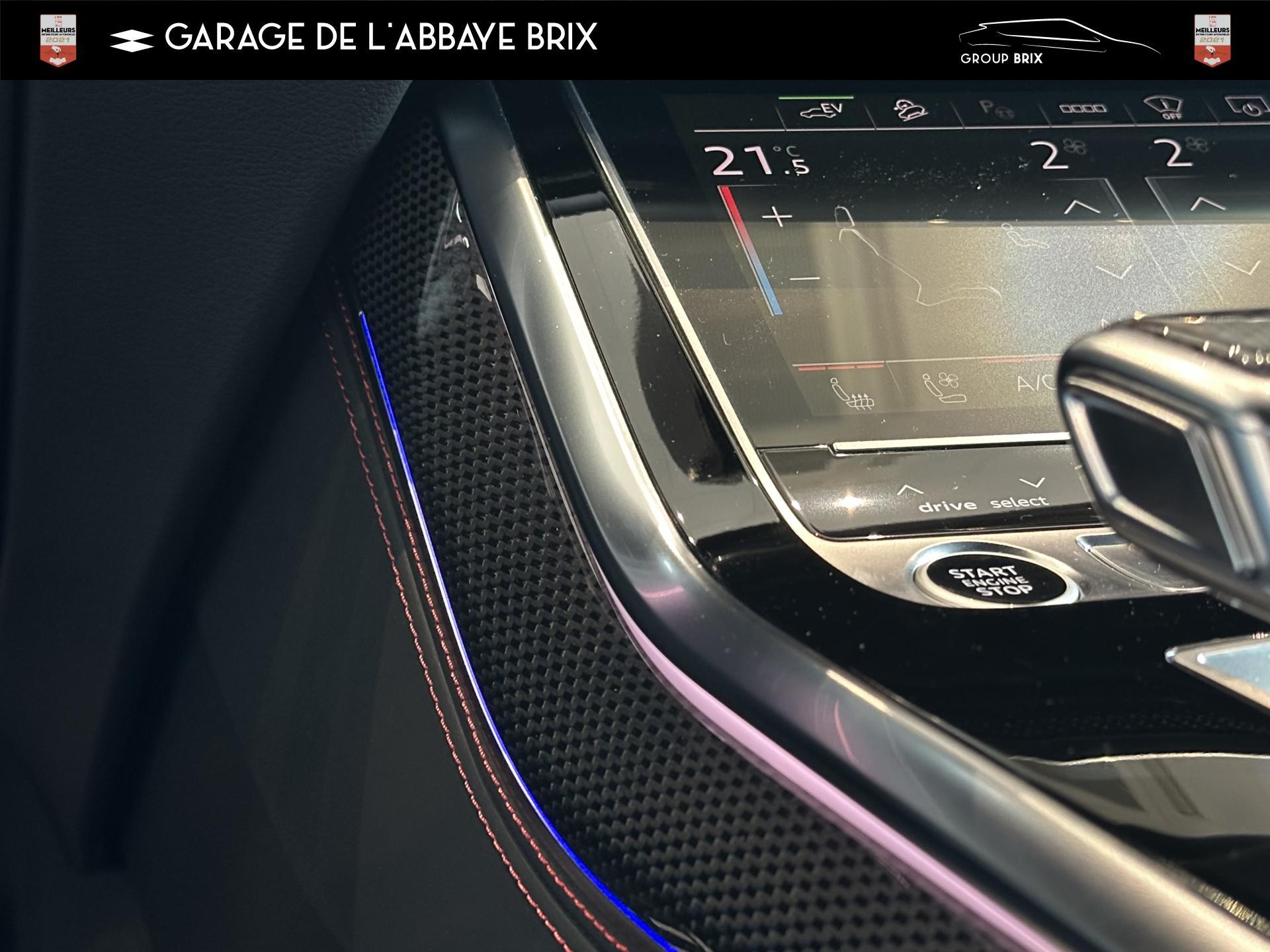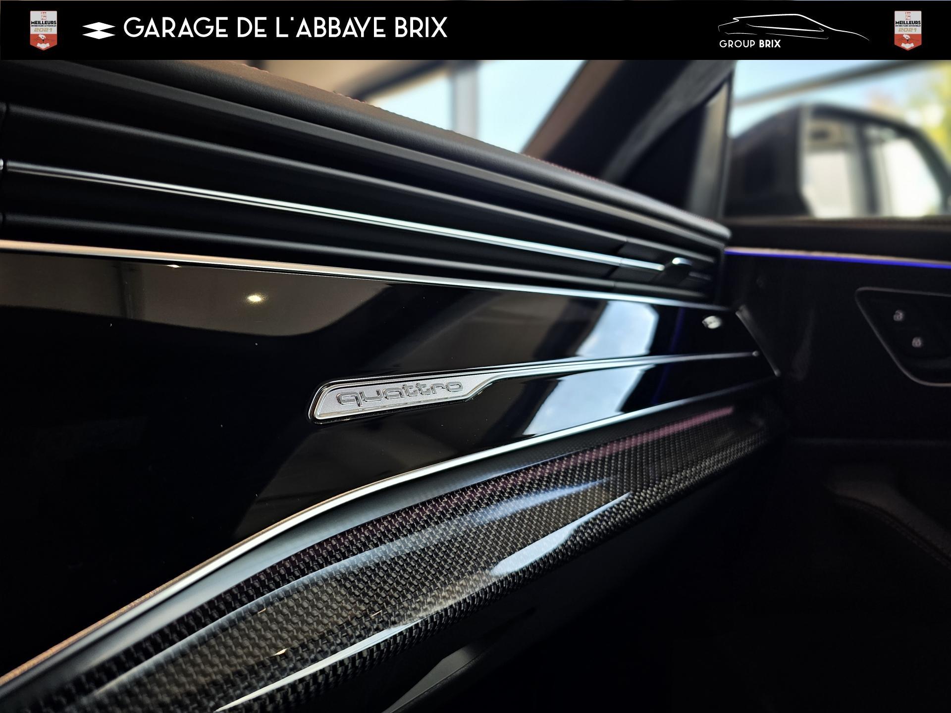 Equipement de recharge - 76H Câble de chargement mode 3 type 2 3 32A 70I Câble de charge pour chargeur ''e-tron compact'' ES3 Prise de recharge CA type 2Autres FT3 Assistant aux manoeuvres de stationnement Plus 1Z2 Augmentation du premier remplissage en carburant de série 8Y1 Avertisseur sonore deux tons YED Code contrôle interne 0N1 Direction progressive 2G1 Insert pour remplissage au carburant sans plomb FY4 Masque de calandre singlefConfort 2F1 Clé Audi connect : votre smartphone se transforme en clé numérique pour votre véhicule 4I3 Clé confort avec verrouillage du coffre à bagages commandé par capteur, sans SAFELOCK Remplacé par: Clé confort avec verrouillage du cDesign extérieur 2Z8 Badges extérieurs avec identification du modèle avec inscription de la puissance/technologie Remplacé par: Suppression du nom de modèle et de l'inscription puissance/technologie 5J1 Becquet arrière de pavillon y compris troisi&egravEclairage QQ2 Pack Éclairage Ambiance LED multicoloreInfotainment IW3 Appel d’urgence et service Audi connect incluant commande du véhicule IT3 Audi connect avec carte SIM intégrée (e-SIM) et licence d'utilisation pour 3 ans UF7 Audi music interface IU1 Audi smartphone interface 9S8 Audi virtual cockpit 9ZX Interface BlMatériaux N7K Sellerie mixte en Cuir/Alcantara Remplacé par: Cuir Valcona avec estampage S et surpiqûres losangePhares 8SQ Blocs de feux arrière à LED avec scène lumineuse dynamique et clignotants séquentiels 8K4 Feux de jour 8X1 Lave-projecteurs 8G5 Projecteurs HD Matrix LED avec scène lumineuse dynamique et clignotants séquentiels 8IT Projecteurs à LEDRoues & pneumatiques 7K1 Affichage de contrôle de pression des pneus 1PR Écrous de roues antivol avec indicateur de desserrage d’écrous C7F Jantes all. léger, en style à 5 branc. en V (style S), Gris Graphite, tourn. bril., 10,0J x 21, pneus 285/45 R21 RemSièges 6E6 Accoudoir central confort à l’avant 5ZF Appuie-tête à l’avant pour les sièges avant, réglables manuellement en hauteur 7P1 Appui lombaire à 4 axes pour les sièges avant à réglage électrique, horizontalSystèmes d'assistance QI6 Affichage de la périodicité d'entretien 30000 km ou 2 ans ( variable ) UH2 Assistant de maintien à l’arrêt 7X5 Assistant de stationnement 7W1 Audi pre sense basic Remplacé par: Audi pre sense rear 6K8 Audi pre sense fTechnologies et sécurité 2MA Adaptive Air Suspension Sport 4UF Airbag pour conducteur et passager avant avec désactivation de l'airbag du passager avant 4X3 Airbags latéraux à l’avant incluant système d’airbags de tête Remplacé Toits & vitres 9PA Bras et balais d'essuie-glace standard 4GF Pare-brise en verre de sécurité feuilleté athermique 5XC Pare-soleil avec miroir de courtoisie éclairé côtés conducteur et passager avant Remplacé par: Pare-soleil extensibleVolants & éléments de commande 6F7 Logos extérieurs S line 2PF Volant Sport cuir multifonction contour en cuir style 3 branches avec méplat + palettes de changement de vitesses