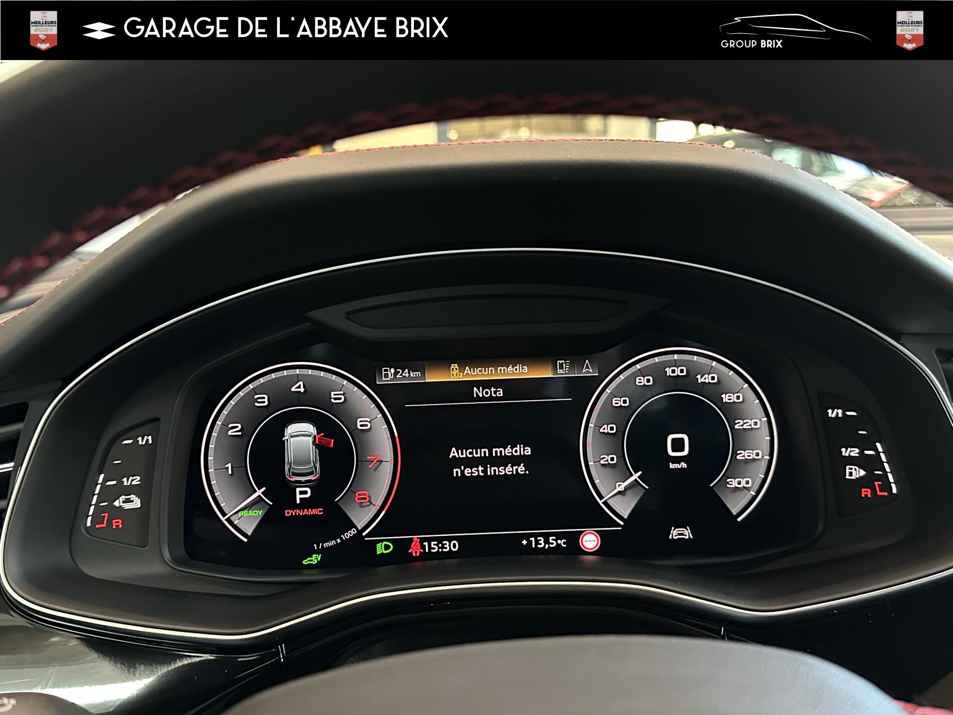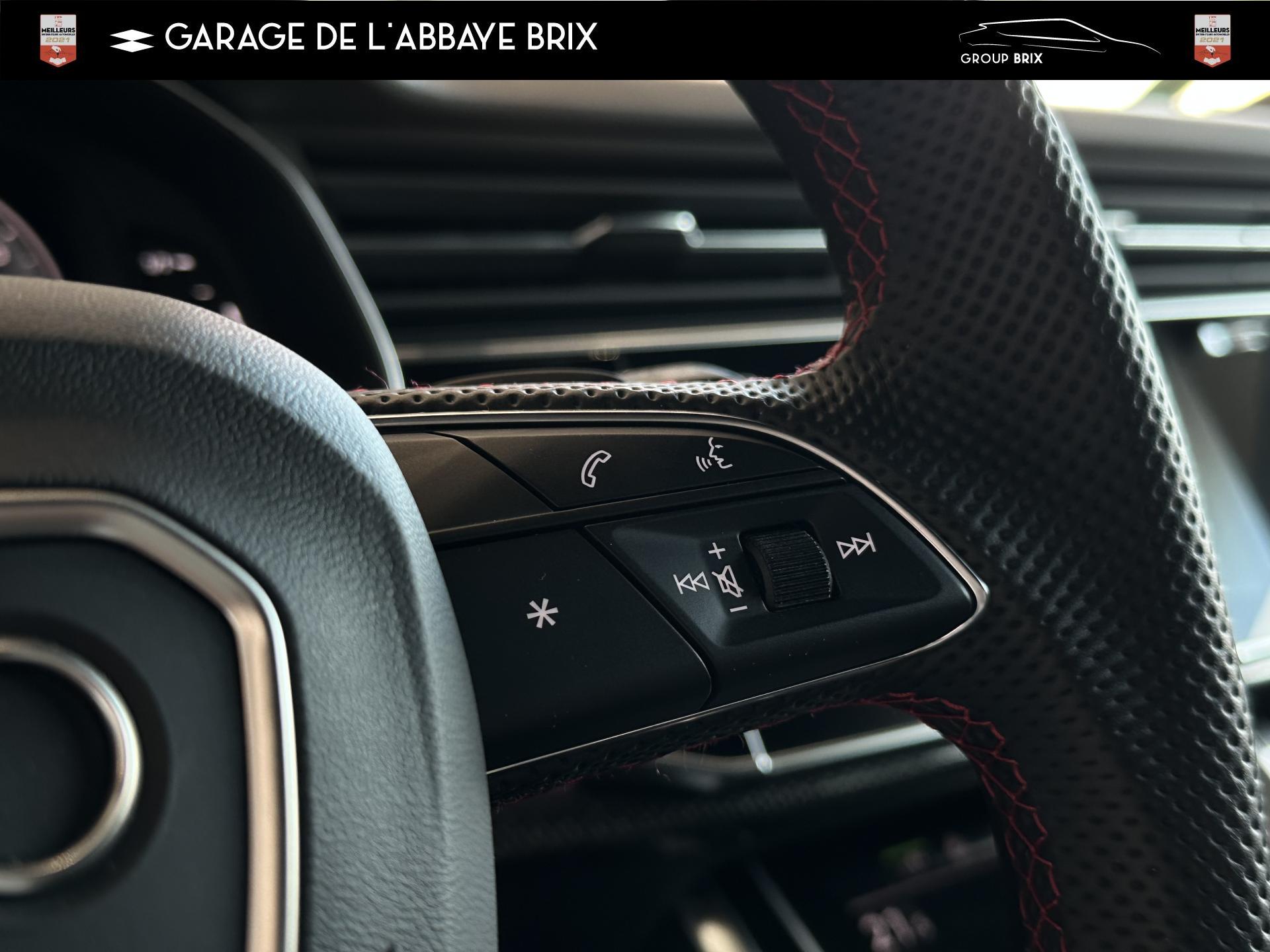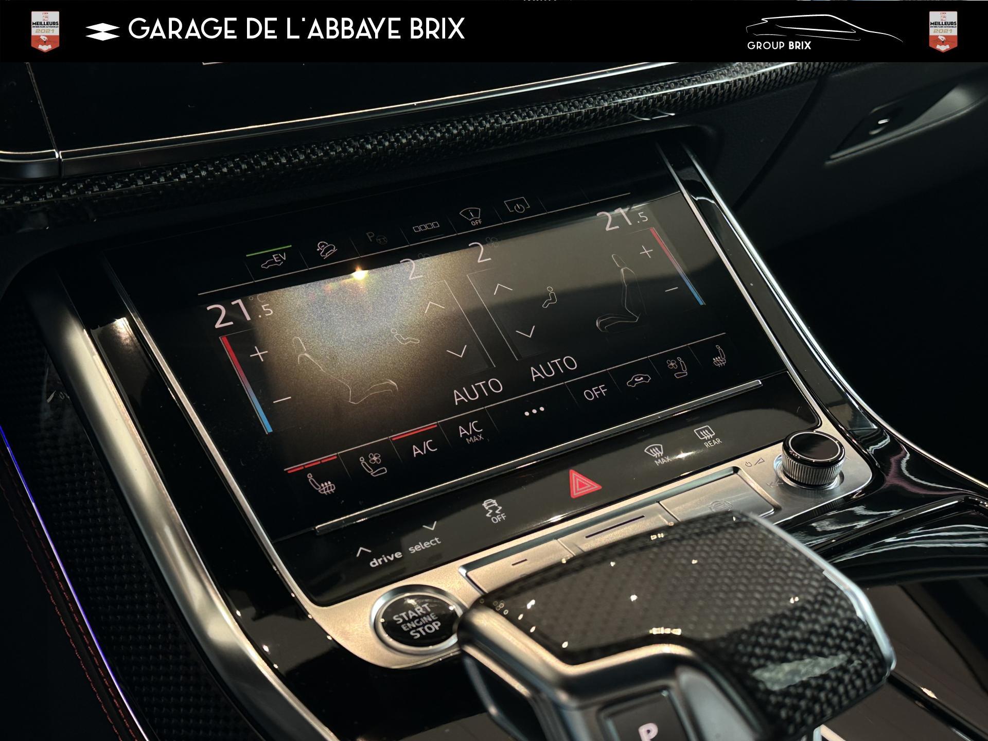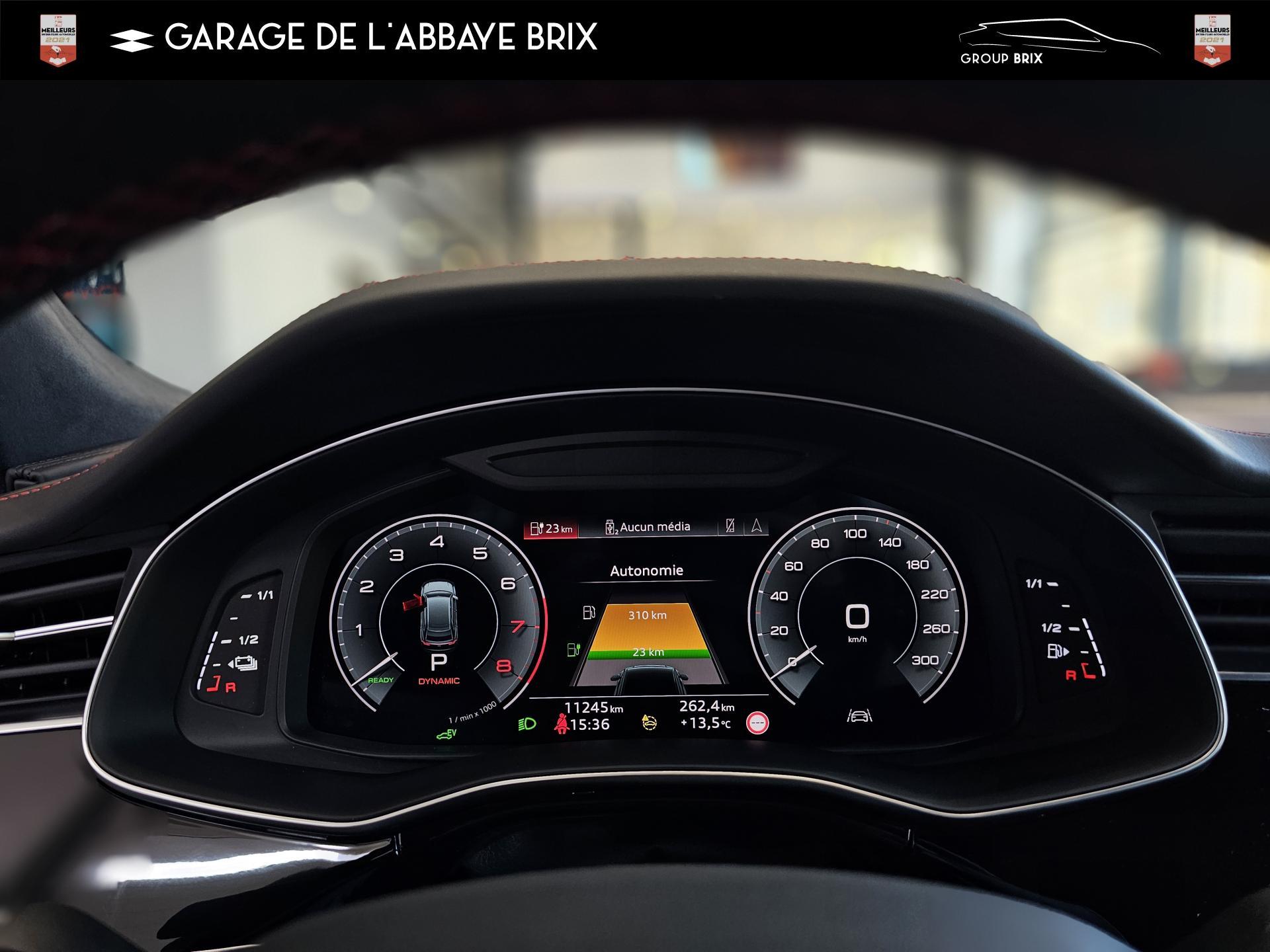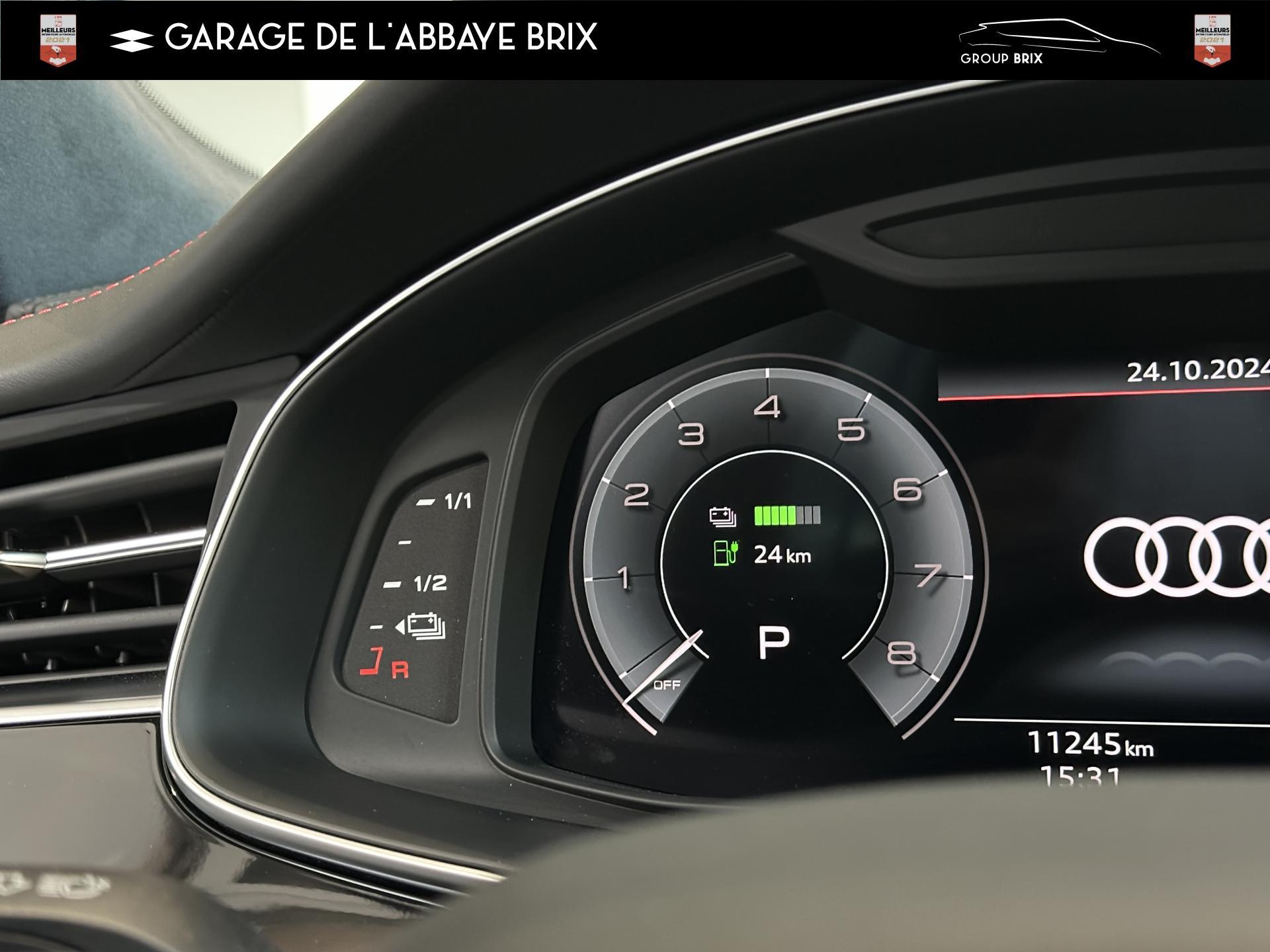 Equipement de recharge - 76H Câble de chargement mode 3 type 2 3 32A 70I Câble de charge pour chargeur ''e-tron compact'' ES3 Prise de recharge CA type 2Autres FT3 Assistant aux manoeuvres de stationnement Plus 1Z2 Augmentation du premier remplissage en carburant de série 8Y1 Avertisseur sonore deux tons YED Code contrôle interne 0N1 Direction progressive 2G1 Insert pour remplissage au carburant sans plomb FY4 Masque de calandre singlefConfort 2F1 Clé Audi connect : votre smartphone se transforme en clé numérique pour votre véhicule 4I3 Clé confort avec verrouillage du coffre à bagages commandé par capteur, sans SAFELOCK Remplacé par: Clé confort avec verrouillage du cDesign extérieur 2Z8 Badges extérieurs avec identification du modèle avec inscription de la puissance/technologie Remplacé par: Suppression du nom de modèle et de l'inscription puissance/technologie 5J1 Becquet arrière de pavillon y compris troisi&egravEclairage QQ2 Pack Éclairage Ambiance LED multicoloreInfotainment IW3 Appel d’urgence et service Audi connect incluant commande du véhicule IT3 Audi connect avec carte SIM intégrée (e-SIM) et licence d'utilisation pour 3 ans UF7 Audi music interface IU1 Audi smartphone interface 9S8 Audi virtual cockpit 9ZX Interface BlMatériaux N7K Sellerie mixte en Cuir/Alcantara Remplacé par: Cuir Valcona avec estampage S et surpiqûres losangePhares 8SQ Blocs de feux arrière à LED avec scène lumineuse dynamique et clignotants séquentiels 8K4 Feux de jour 8X1 Lave-projecteurs 8G5 Projecteurs HD Matrix LED avec scène lumineuse dynamique et clignotants séquentiels 8IT Projecteurs à LEDRoues & pneumatiques 7K1 Affichage de contrôle de pression des pneus 1PR Écrous de roues antivol avec indicateur de desserrage d’écrous C7F Jantes all. léger, en style à 5 branc. en V (style S), Gris Graphite, tourn. bril., 10,0J x 21, pneus 285/45 R21 RemSièges 6E6 Accoudoir central confort à l’avant 5ZF Appuie-tête à l’avant pour les sièges avant, réglables manuellement en hauteur 7P1 Appui lombaire à 4 axes pour les sièges avant à réglage électrique, horizontalSystèmes d'assistance QI6 Affichage de la périodicité d'entretien 30000 km ou 2 ans ( variable ) UH2 Assistant de maintien à l’arrêt 7X5 Assistant de stationnement 7W1 Audi pre sense basic Remplacé par: Audi pre sense rear 6K8 Audi pre sense fTechnologies et sécurité 2MA Adaptive Air Suspension Sport 4UF Airbag pour conducteur et passager avant avec désactivation de l'airbag du passager avant 4X3 Airbags latéraux à l’avant incluant système d’airbags de tête Remplacé Toits & vitres 9PA Bras et balais d'essuie-glace standard 4GF Pare-brise en verre de sécurité feuilleté athermique 5XC Pare-soleil avec miroir de courtoisie éclairé côtés conducteur et passager avant Remplacé par: Pare-soleil extensibleVolants & éléments de commande 6F7 Logos extérieurs S line 2PF Volant Sport cuir multifonction contour en cuir style 3 branches avec méplat + palettes de changement de vitesses
