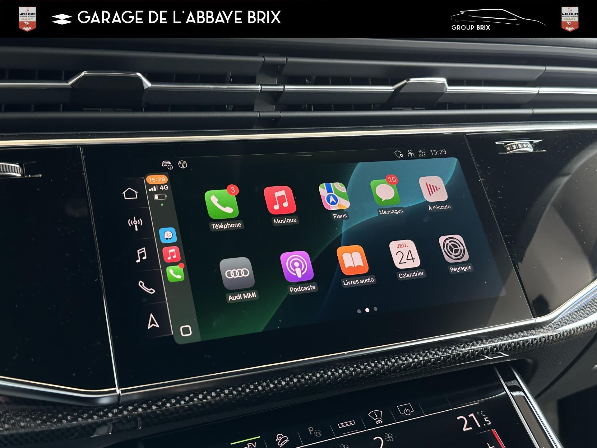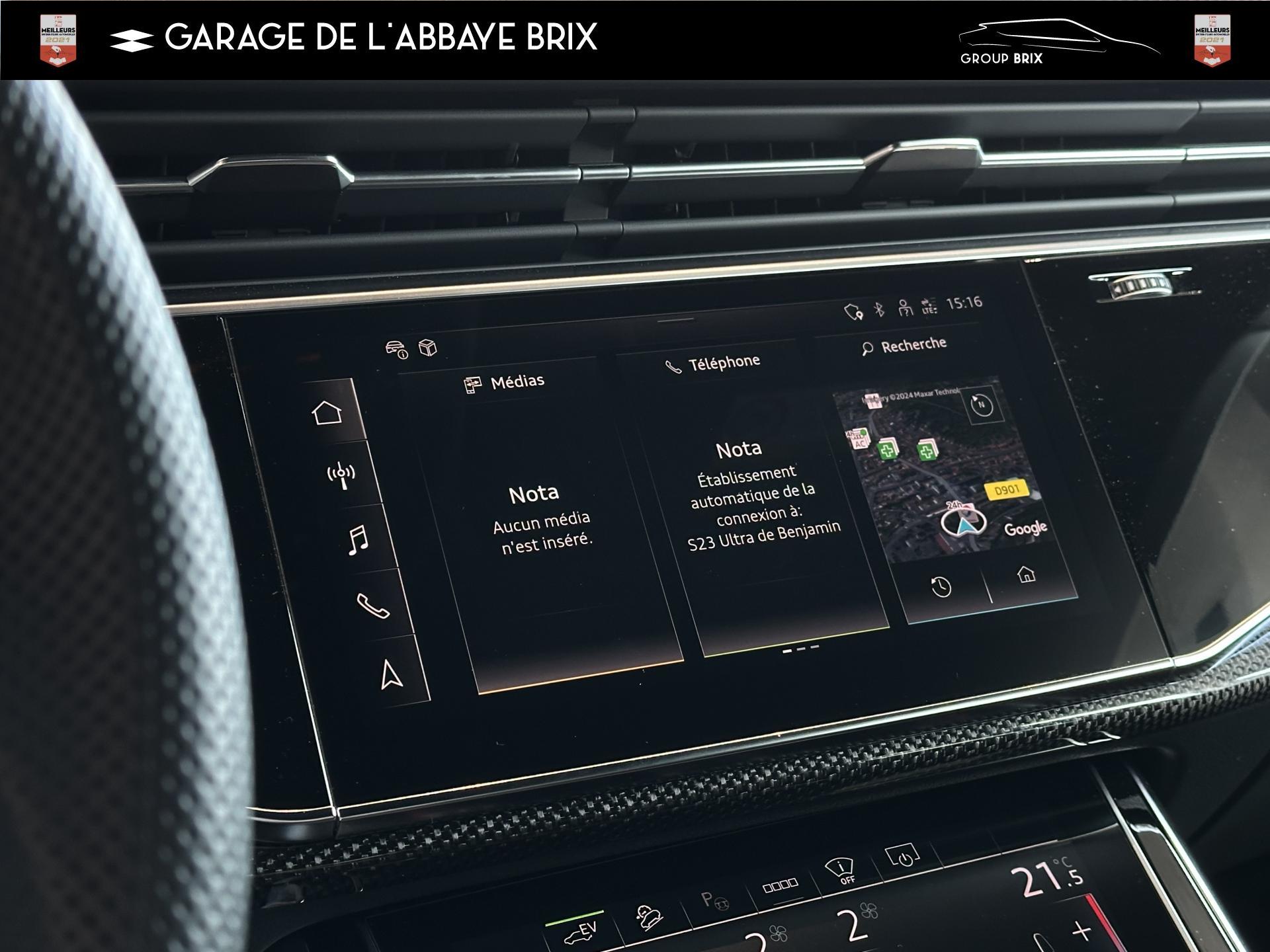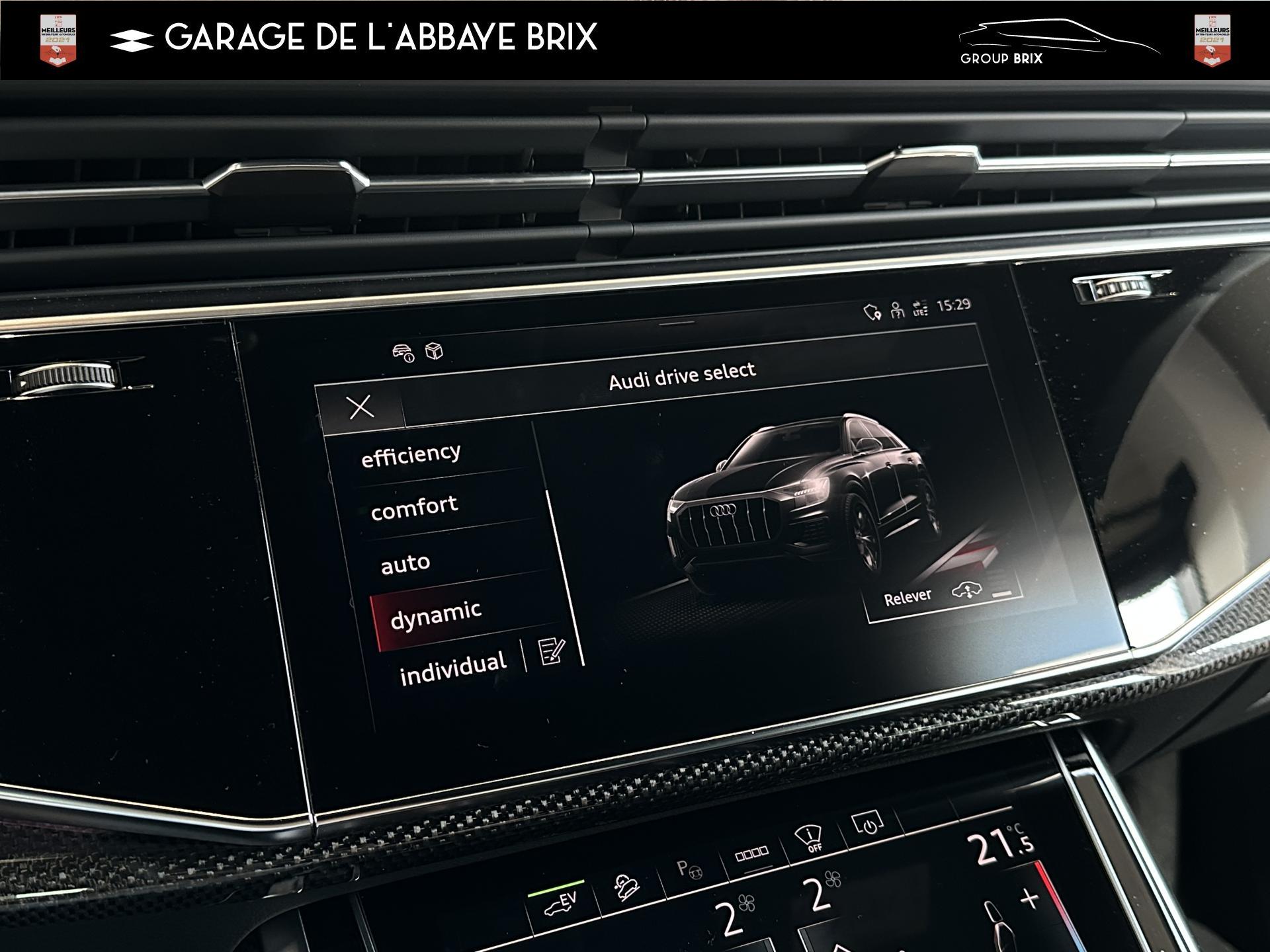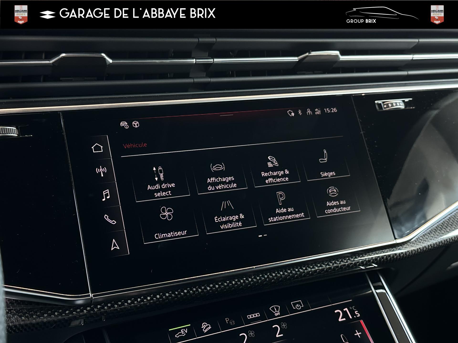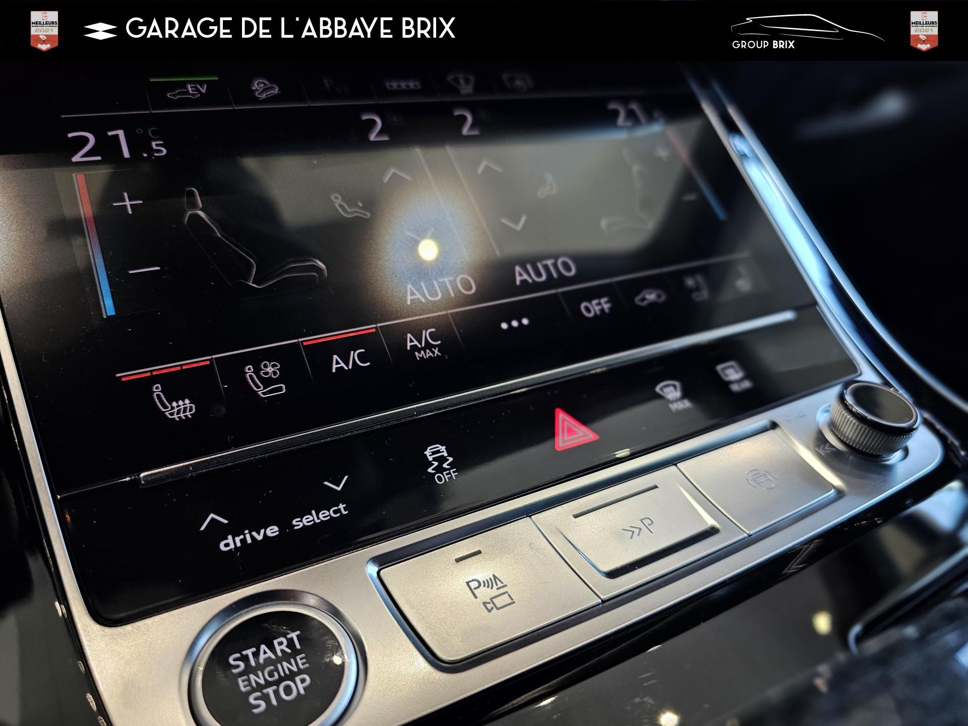 Equipement de recharge - 76H Câble de chargement mode 3 type 2 3 32A 70I Câble de charge pour chargeur ''e-tron compact'' ES3 Prise de recharge CA type 2Autres FT3 Assistant aux manoeuvres de stationnement Plus 1Z2 Augmentation du premier remplissage en carburant de série 8Y1 Avertisseur sonore deux tons YED Code contrôle interne 0N1 Direction progressive 2G1 Insert pour remplissage au carburant sans plomb FY4 Masque de calandre singlefConfort 2F1 Clé Audi connect : votre smartphone se transforme en clé numérique pour votre véhicule 4I3 Clé confort avec verrouillage du coffre à bagages commandé par capteur, sans SAFELOCK Remplacé par: Clé confort avec verrouillage du cDesign extérieur 2Z8 Badges extérieurs avec identification du modèle avec inscription de la puissance/technologie Remplacé par: Suppression du nom de modèle et de l'inscription puissance/technologie 5J1 Becquet arrière de pavillon y compris troisi&egravEclairage QQ2 Pack Éclairage Ambiance LED multicoloreInfotainment IW3 Appel d’urgence et service Audi connect incluant commande du véhicule IT3 Audi connect avec carte SIM intégrée (e-SIM) et licence d'utilisation pour 3 ans UF7 Audi music interface IU1 Audi smartphone interface 9S8 Audi virtual cockpit 9ZX Interface BlMatériaux N7K Sellerie mixte en Cuir/Alcantara Remplacé par: Cuir Valcona avec estampage S et surpiqûres losangePhares 8SQ Blocs de feux arrière à LED avec scène lumineuse dynamique et clignotants séquentiels 8K4 Feux de jour 8X1 Lave-projecteurs 8G5 Projecteurs HD Matrix LED avec scène lumineuse dynamique et clignotants séquentiels 8IT Projecteurs à LEDRoues & pneumatiques 7K1 Affichage de contrôle de pression des pneus 1PR Écrous de roues antivol avec indicateur de desserrage d’écrous C7F Jantes all. léger, en style à 5 branc. en V (style S), Gris Graphite, tourn. bril., 10,0J x 21, pneus 285/45 R21 RemSièges 6E6 Accoudoir central confort à l’avant 5ZF Appuie-tête à l’avant pour les sièges avant, réglables manuellement en hauteur 7P1 Appui lombaire à 4 axes pour les sièges avant à réglage électrique, horizontalSystèmes d'assistance QI6 Affichage de la périodicité d'entretien 30000 km ou 2 ans ( variable ) UH2 Assistant de maintien à l’arrêt 7X5 Assistant de stationnement 7W1 Audi pre sense basic Remplacé par: Audi pre sense rear 6K8 Audi pre sense fTechnologies et sécurité 2MA Adaptive Air Suspension Sport 4UF Airbag pour conducteur et passager avant avec désactivation de l'airbag du passager avant 4X3 Airbags latéraux à l’avant incluant système d’airbags de tête Remplacé Toits & vitres 9PA Bras et balais d'essuie-glace standard 4GF Pare-brise en verre de sécurité feuilleté athermique 5XC Pare-soleil avec miroir de courtoisie éclairé côtés conducteur et passager avant Remplacé par: Pare-soleil extensibleVolants & éléments de commande 6F7 Logos extérieurs S line 2PF Volant Sport cuir multifonction contour en cuir style 3 branches avec méplat + palettes de changement de vitesses