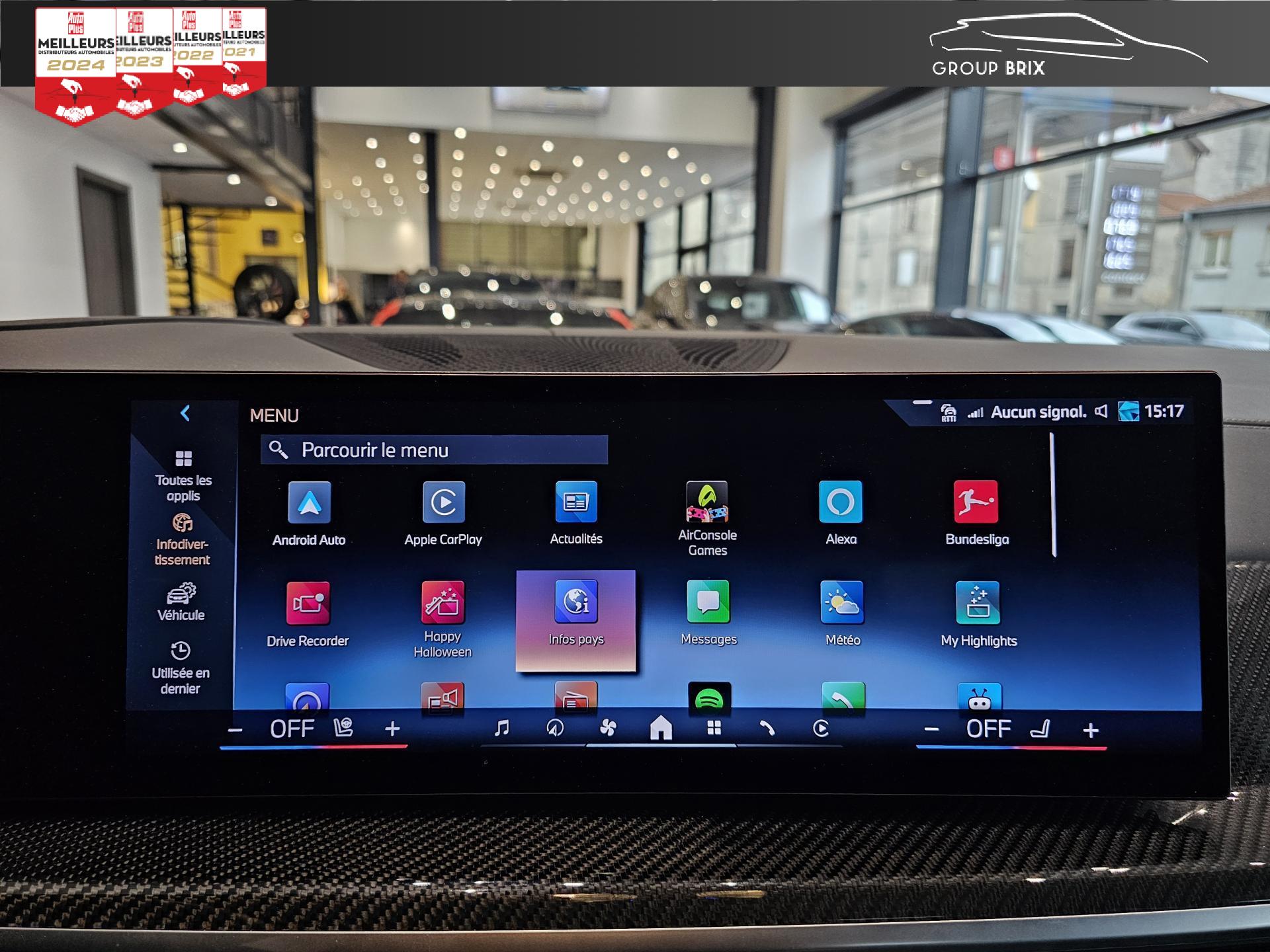 Active GuardAlarme antivolAttention Assist : système de détection de somnolenceAvertisseur sonore pour piétonsBMW Iconic Sounds ElectricBMW Live Cockpit Navigation PlusCâble recharge professionnel Mode 3 (T2-T2) pour la recharge publiqueDalle de recharge par inductionEclairage d'ambianceFeux de route permanents anti-éblouissementHayon ouvrant en deux parties avec commande électrique de la partie supérieurePack Aérodynamique MPack Connected ProPark AssistProjecteurs avant LEDServices BMW ConnectedDriveShadow Line M brillant