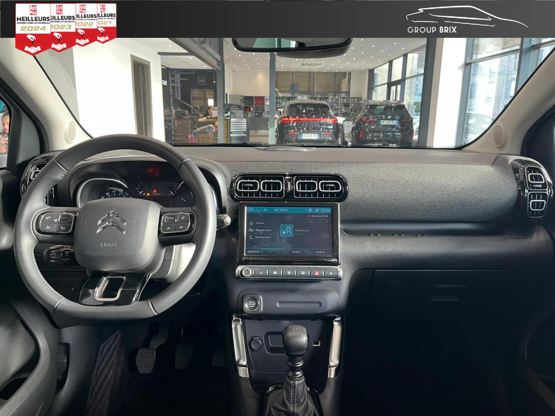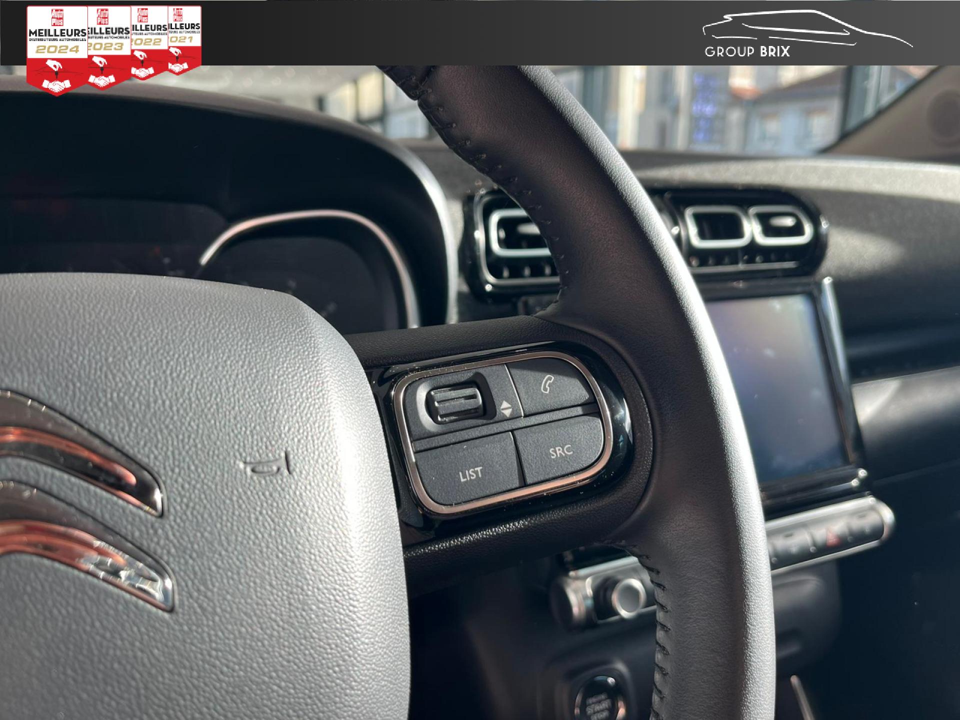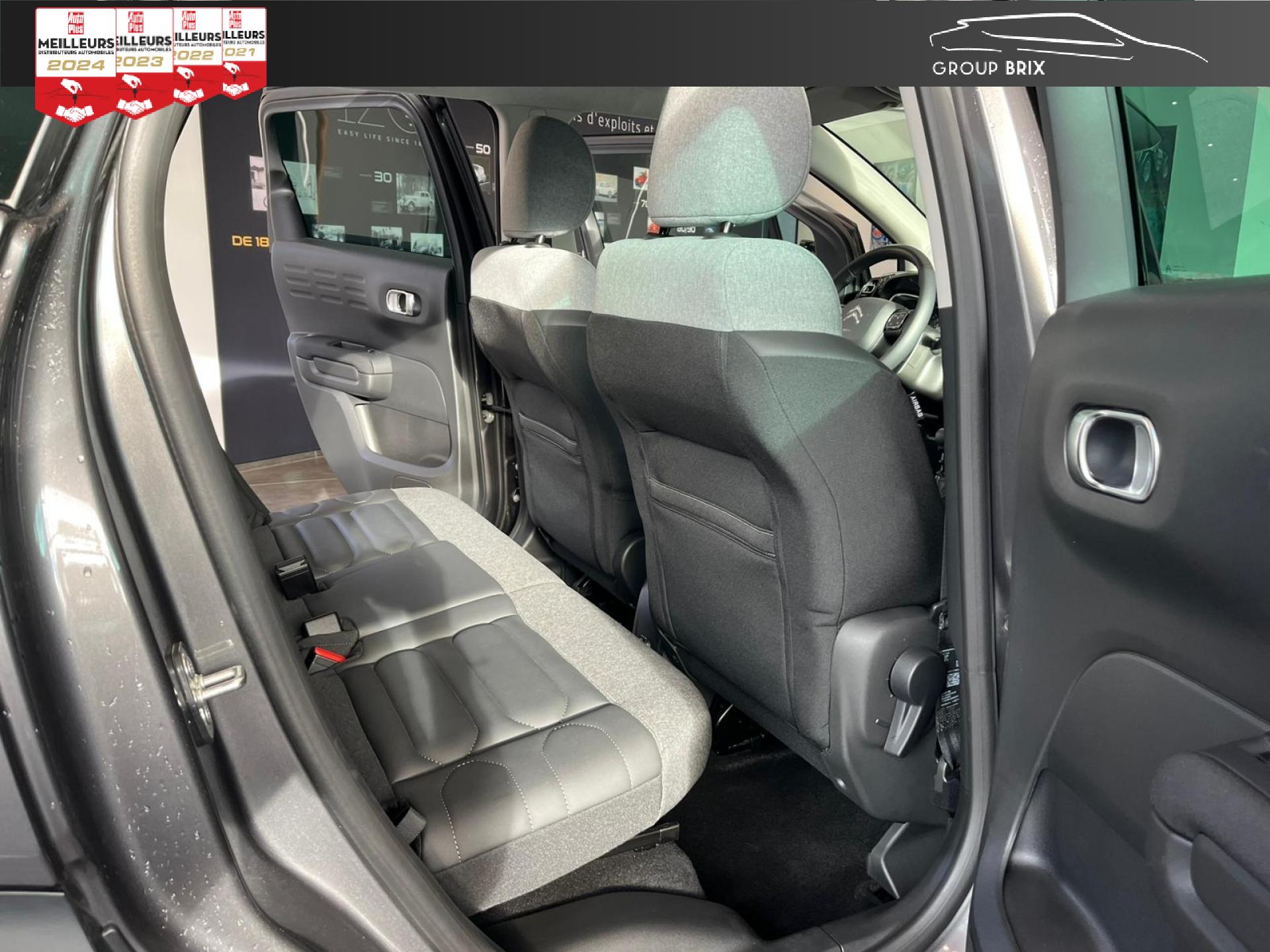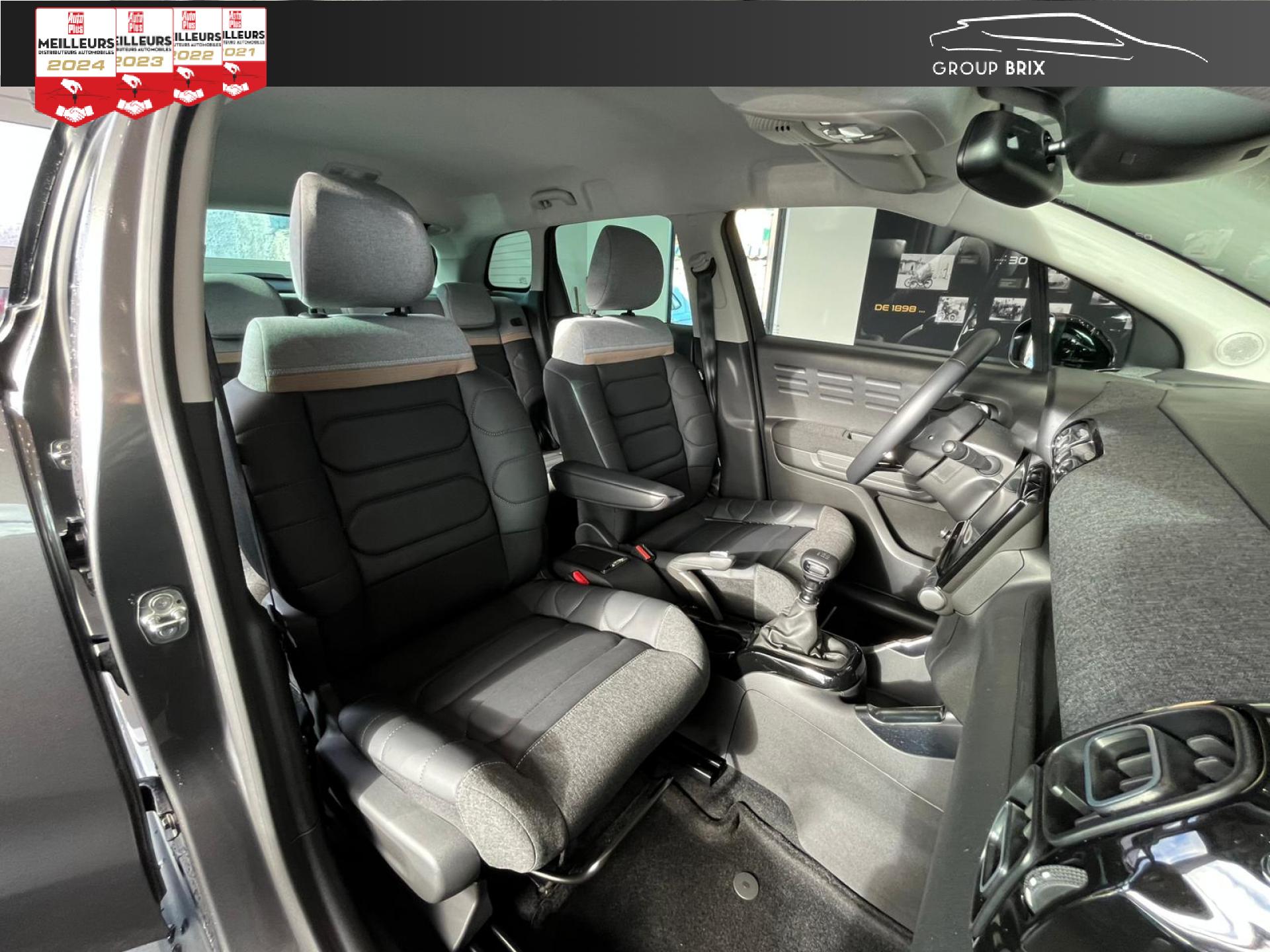 Banquette arrière fractionnable 2/3 - 1/3Barres de toit Noir brillantCITROËN Connect Nav sur tablette tactile 9" avec Mirror Screen + CITROËN Connect Box avec Pack SOS et assistanceCommandes au volant du système audioConsole centrale noir brillant et rangement ferméContrôle dynamique de stabilité (ESP)Feux diurnes à LEDFrein à main avec insert chromeKit mains libres Bluetooth et prise USBOrdinateur de bordRétroviseurs extérieurs réglables électriquement et dégivrantsSellerie Tissu effet cuir Mistral Black /Tissu Brasilia Graphite Chiné + Sièges Advanced Comfort + Ambiance Métropolitan GraphiteSiège conducteur réglable en hauteurVitres avant et arrière électriques séquentiellesVolant réglable en hauteur et en profondeur