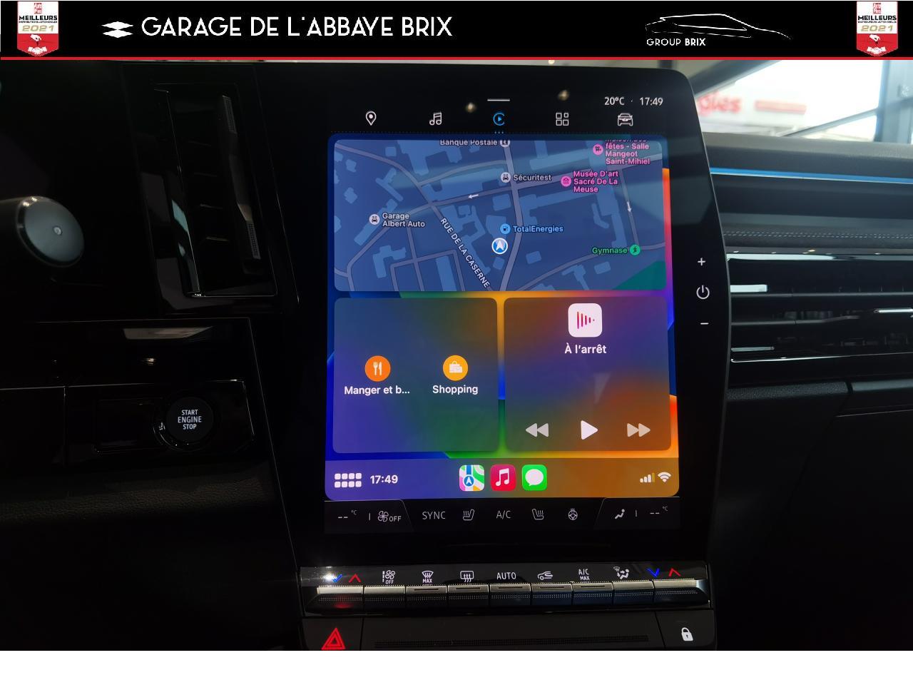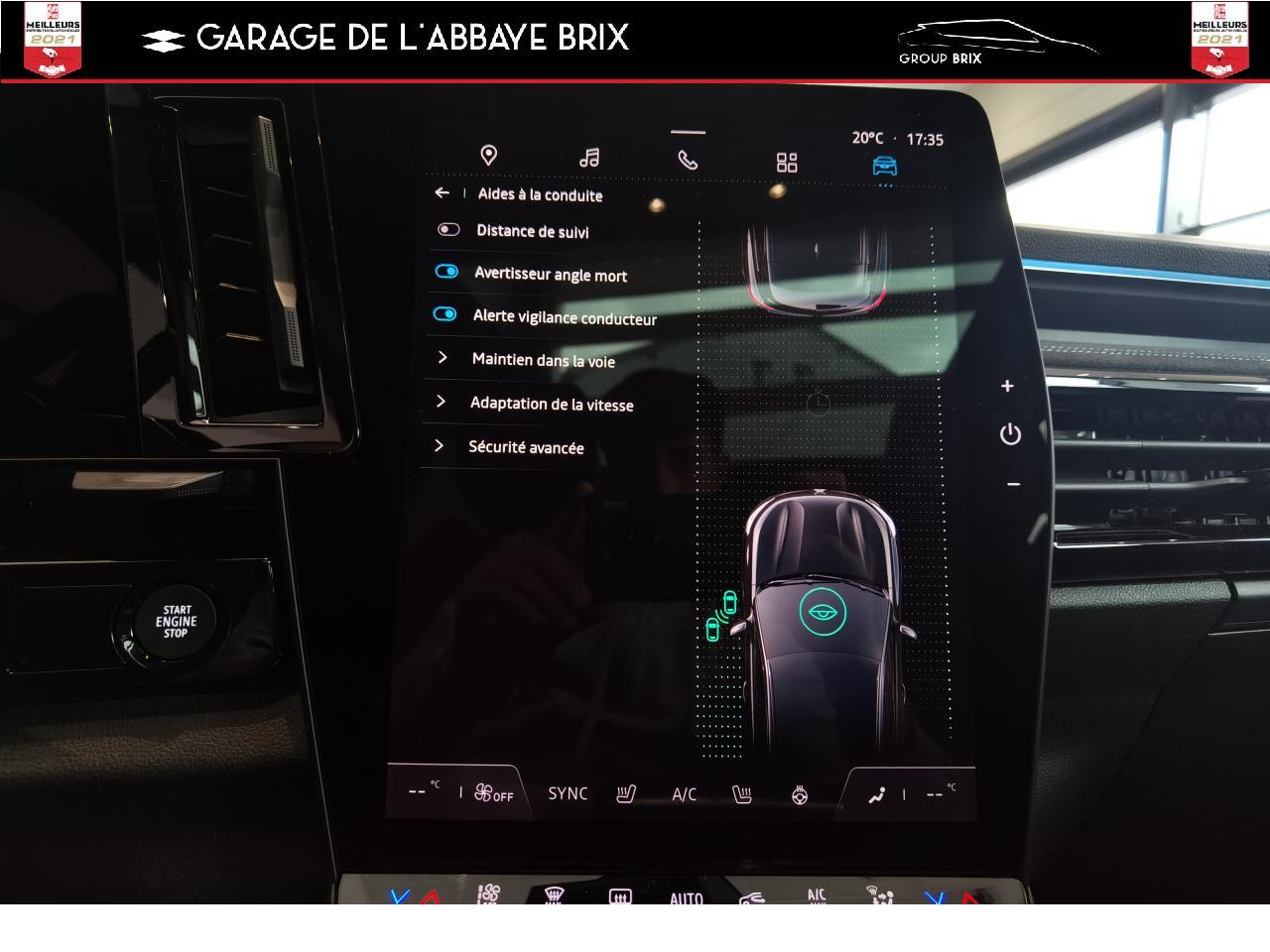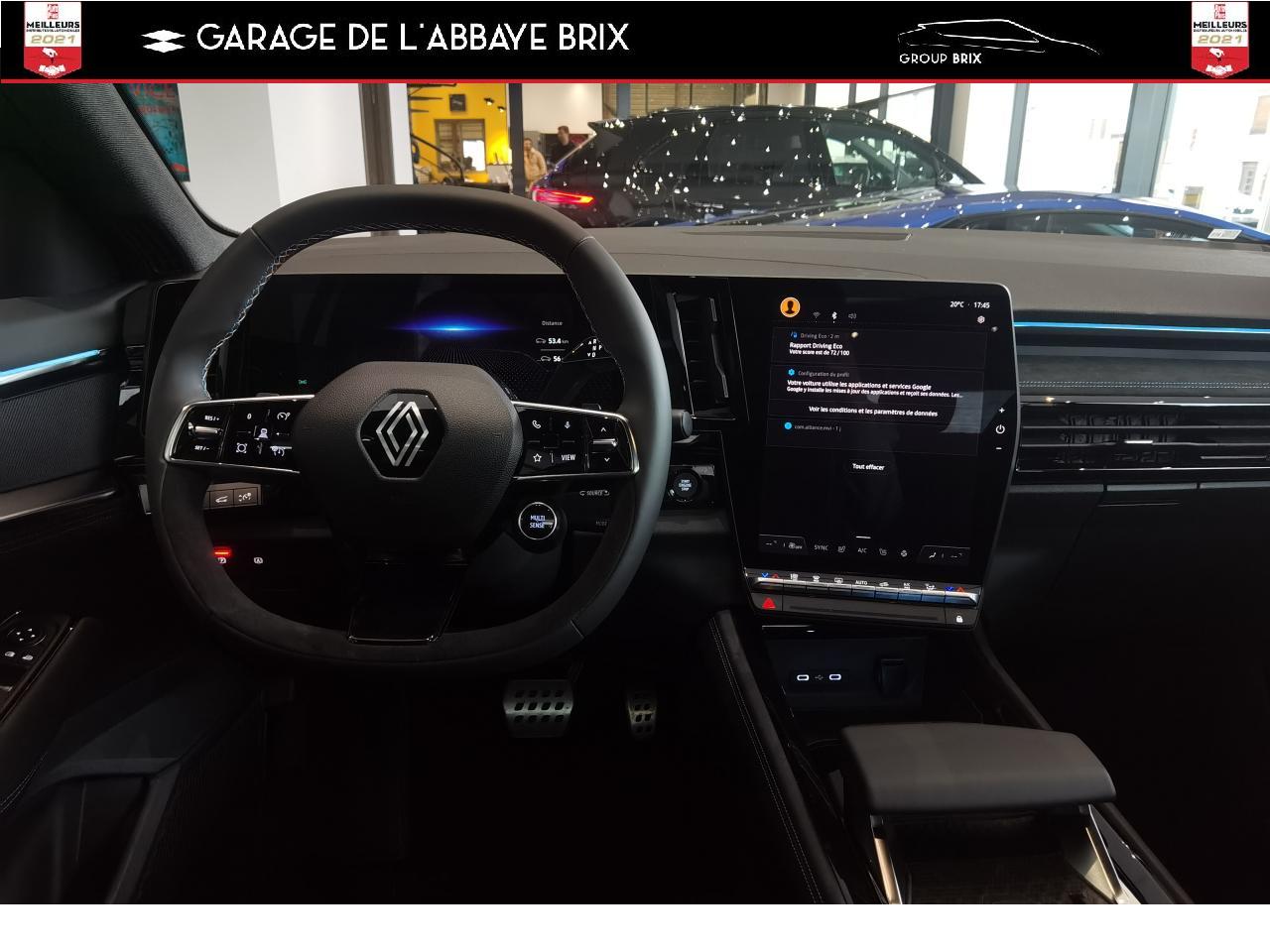 Aide au démarrage en côteAide au maintien dans la voieAide au parking avant et latéralAlerte de franchissement de ligneAlerte distance de sécuritéAntenne de type requin noir étoiléAuto-update inclus pendant 5 ansBouclier avant avec lame sport gris satinCaméra de reculCarte Renault « mains libres » (accès et démarrage)Climatisation automatique bi-zoneEclairage intelligent (commutation automatique feux de croisement/feux de route)Feux arrière à effet 3D à LEDFeux LED adaptive vision (avec fonction antibrouillard intégrée)Freinage d’urgence automatique urbain/péri-urbain avec détection piétons et cyclistesJantes alliage 20" daytona diamantées noirOpen R Link 12": système multimédia avec google intégré incluant pack navigation (Google Mpas et Google Assistant) pendant 5 ans et pack infotainment (Google Play) avec 3 GBPédalier en aluminiumRéglage en hauteur du siège passagerRégulateur de vitesseRéplication smartphone compatible Android Auto & Apple CarPlayRenault MULTI-SENSE (choix des modes de conduite)Sellerie Mixte tissu et Alcantra avec surpiqûres bleuesSon Arkamys 8 haut-parleursSystème d'aide au parking arrièreSystème de reconnaissance des panneaux de signalisationSystème de surveillance de la vigilance du conducteurTableau de bord open R 12,3"Volant spécifique avec insert Alcantara