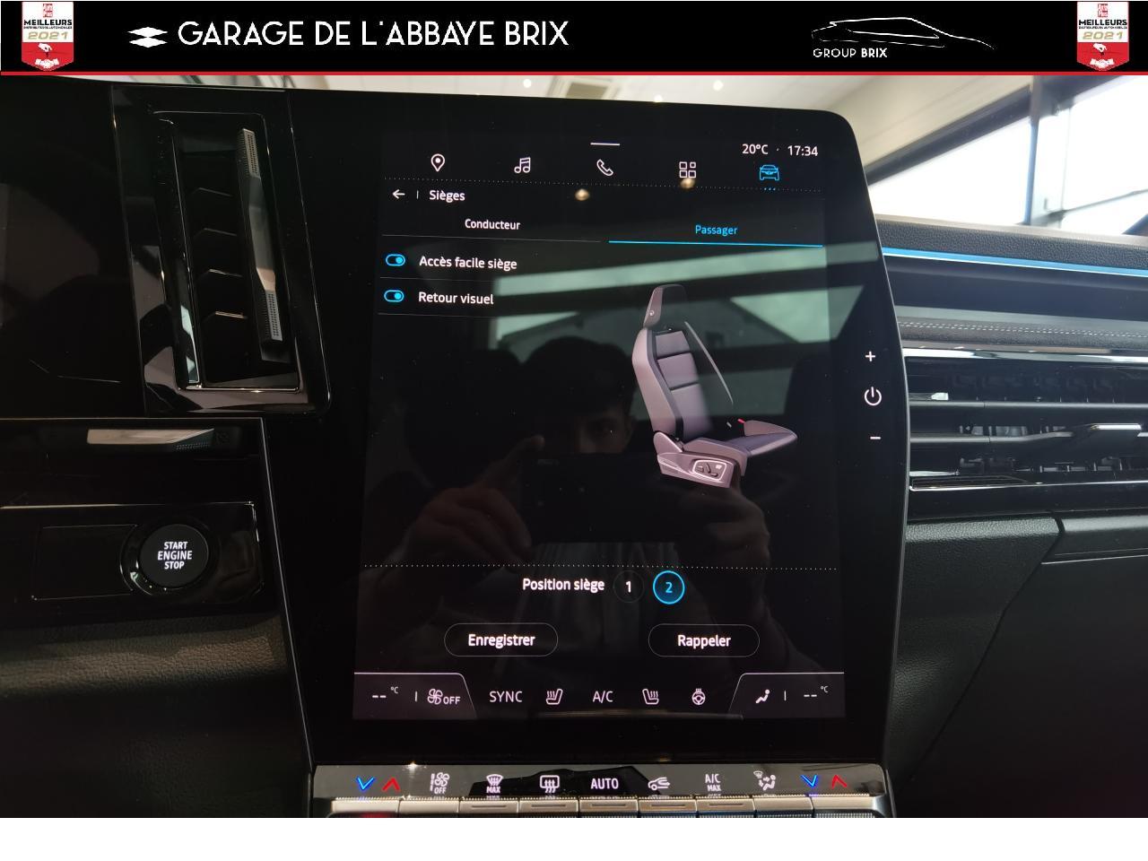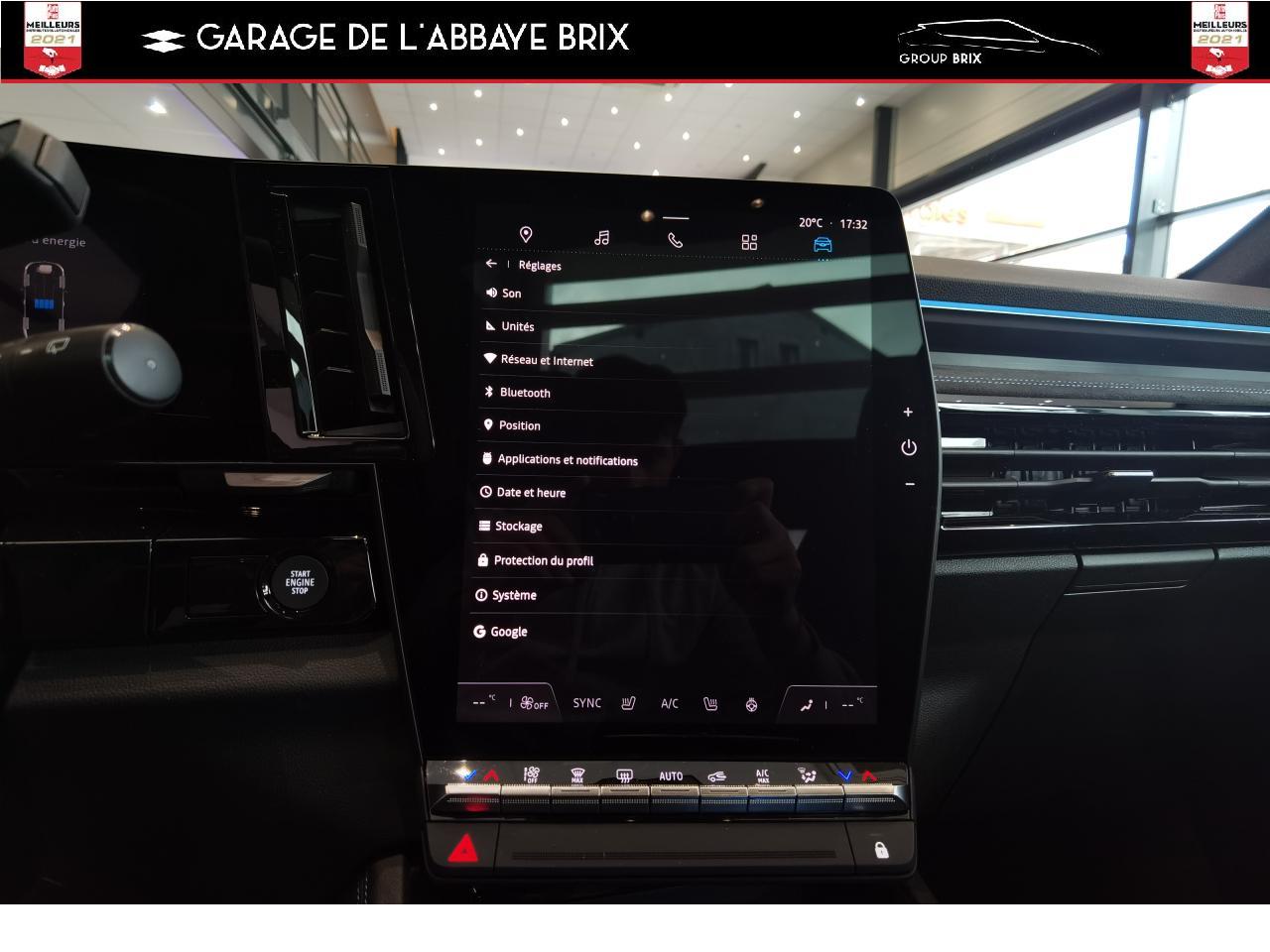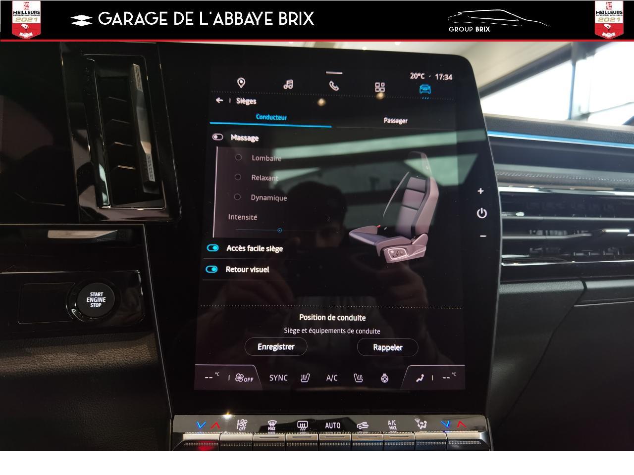 Aide au démarrage en côteAide au maintien dans la voieAide au parking avant et latéralAlerte de franchissement de ligneAlerte distance de sécuritéAntenne de type requin noir étoiléAuto-update inclus pendant 5 ansBouclier avant avec lame sport gris satinCaméra de reculCarte Renault « mains libres » (accès et démarrage)Climatisation automatique bi-zoneEclairage intelligent (commutation automatique feux de croisement/feux de route)Feux arrière à effet 3D à LEDFeux LED adaptive vision (avec fonction antibrouillard intégrée)Freinage d’urgence automatique urbain/péri-urbain avec détection piétons et cyclistesJantes alliage 20" daytona diamantées noirOpen R Link 12": système multimédia avec google intégré incluant pack navigation (Google Mpas et Google Assistant) pendant 5 ans et pack infotainment (Google Play) avec 3 GBPédalier en aluminiumRéglage en hauteur du siège passagerRégulateur de vitesseRéplication smartphone compatible Android Auto & Apple CarPlayRenault MULTI-SENSE (choix des modes de conduite)Sellerie Mixte tissu et Alcantra avec surpiqûres bleuesSon Arkamys 8 haut-parleursSystème d'aide au parking arrièreSystème de reconnaissance des panneaux de signalisationSystème de surveillance de la vigilance du conducteurTableau de bord open R 12,3"Volant spécifique avec insert Alcantara