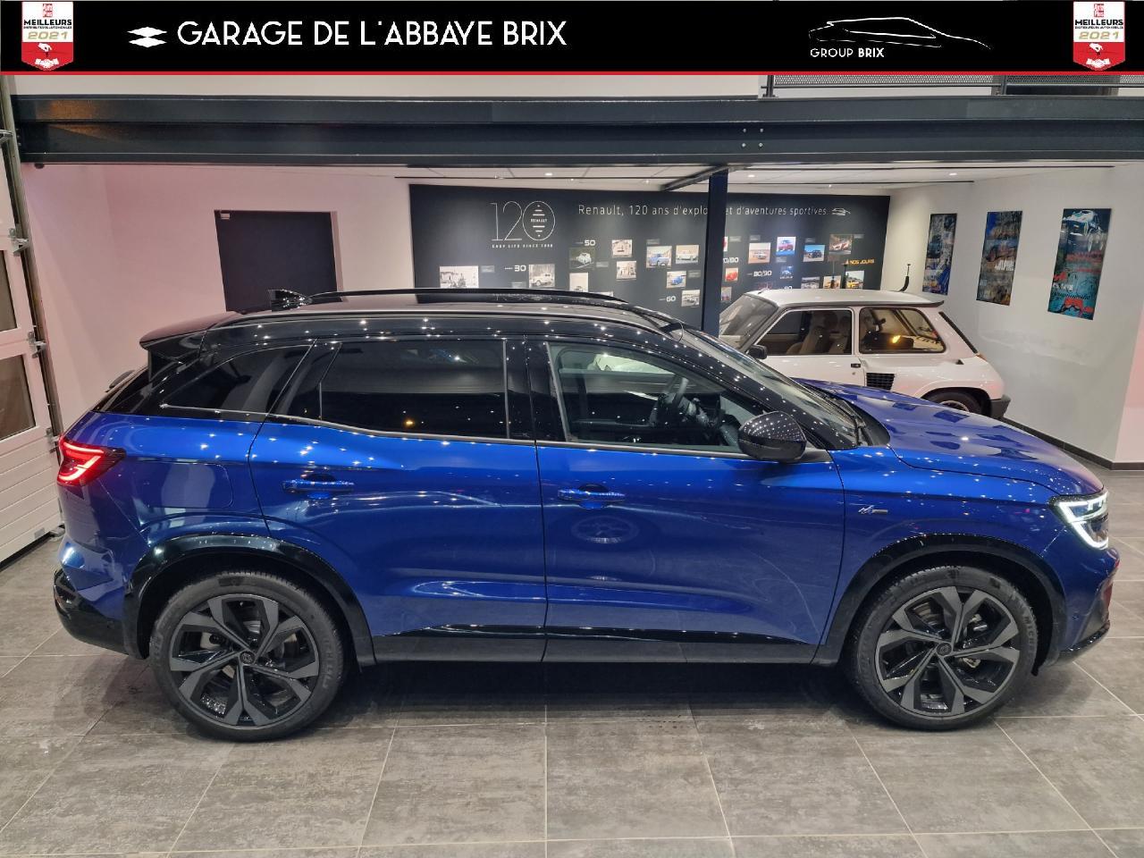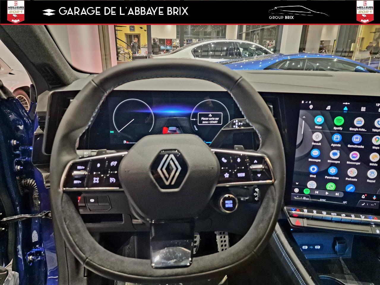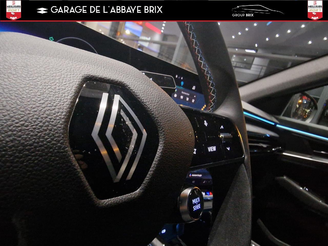 Calandre à damier ice blackCaméra de reculClimatisation automatique bi-zoneEclairage intelligent (commutation automatique feux de croisement/feux de route)Feux arrière à effet 3D à LEDFeux LED adaptive vision (avec fonction antibrouillard intégrée)Hayon motorisé avec ouverture mains-libresJantes alliage 20" daytona diamantées noirPédalier en aluminiumPack City plusPack ComfortPack remote services (via l'application My Renault) inclus pendant 5 ansPack SafetyRéplication smartphone compatible Android Auto & Apple CarPlayRenault MULTI-SENSE (choix des modes de conduite)Tableau de bord open R 12,3"Volant spécifique avec insert Alcantara