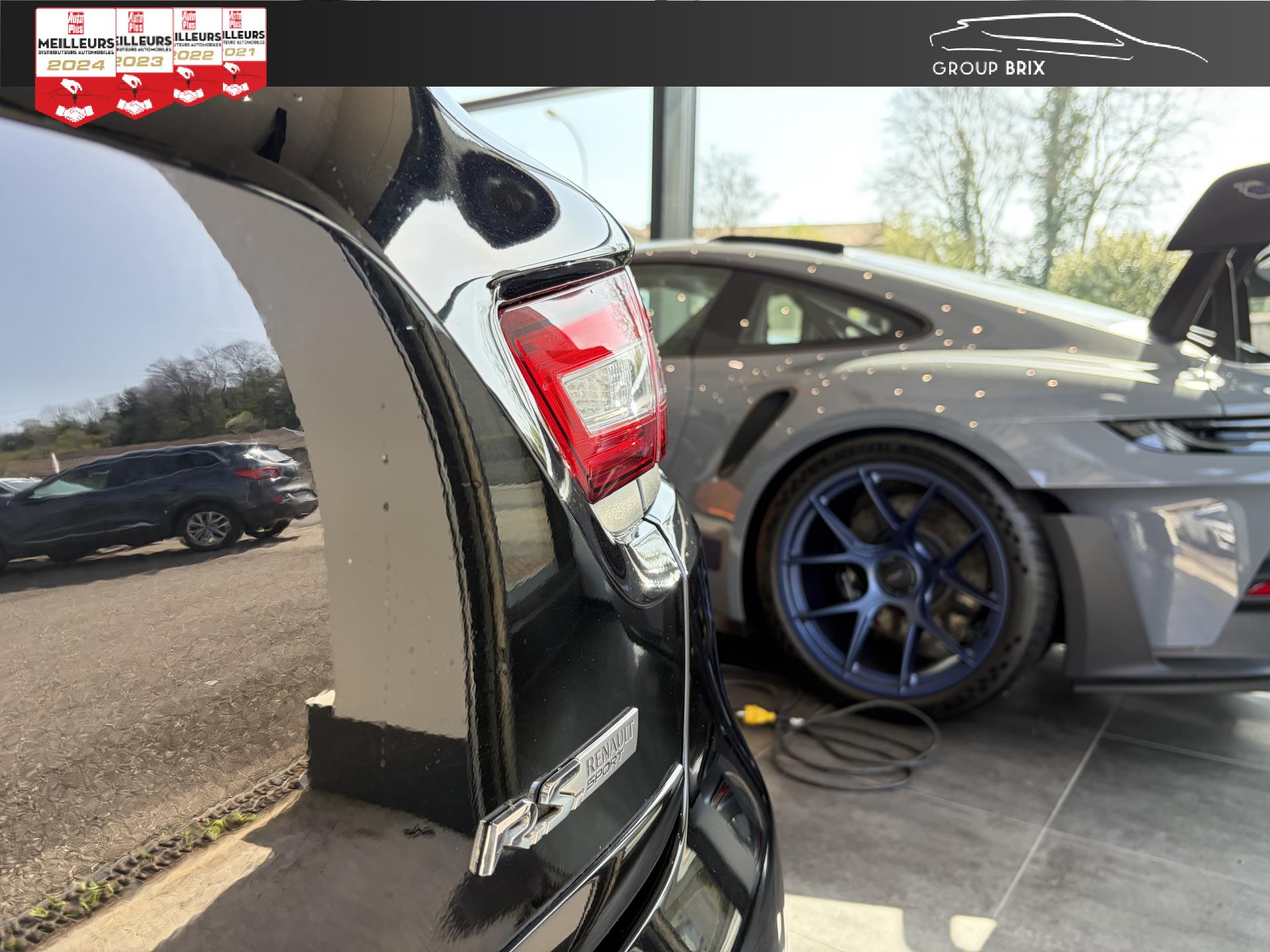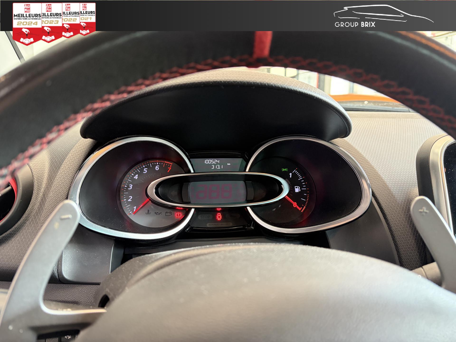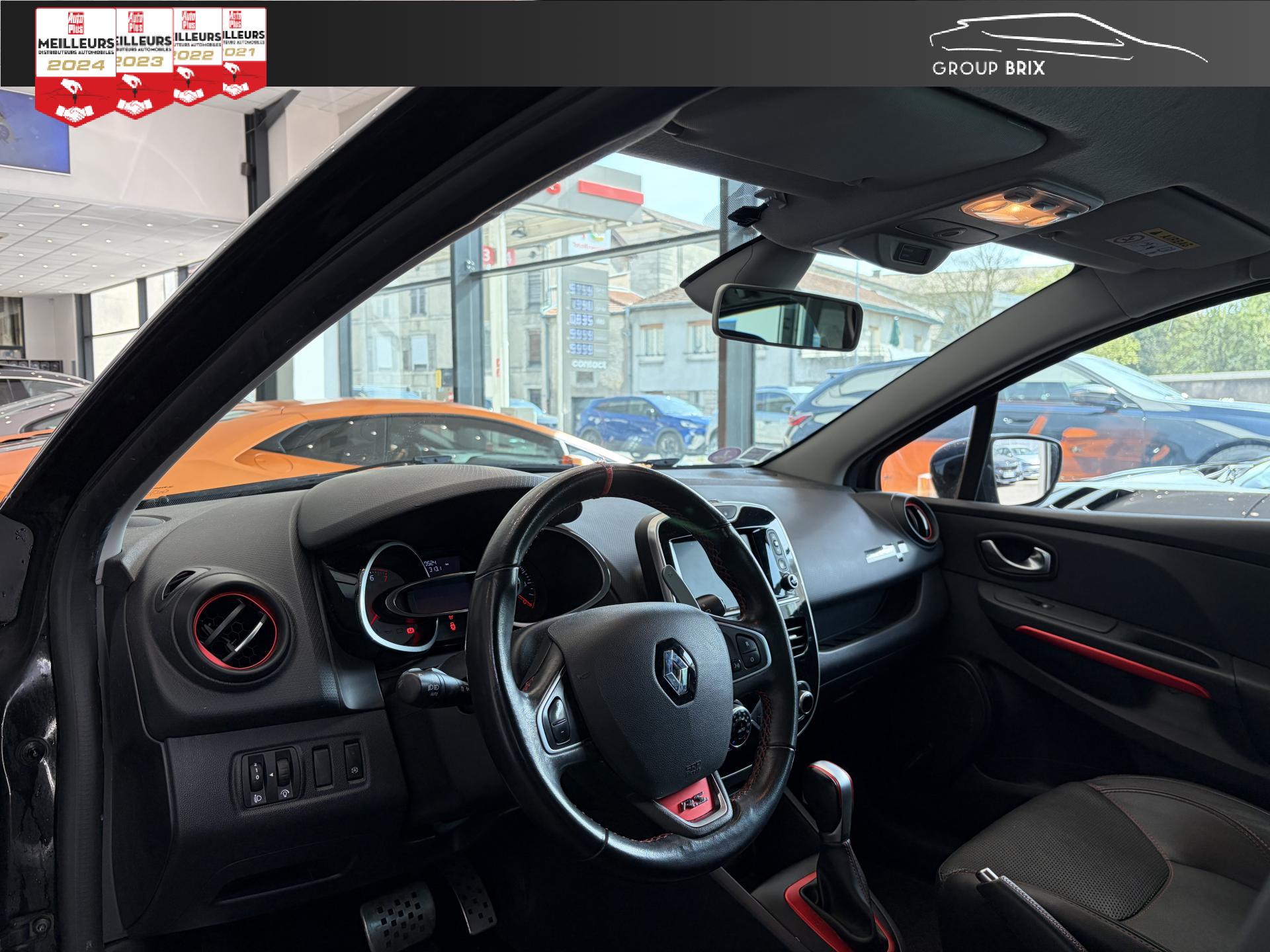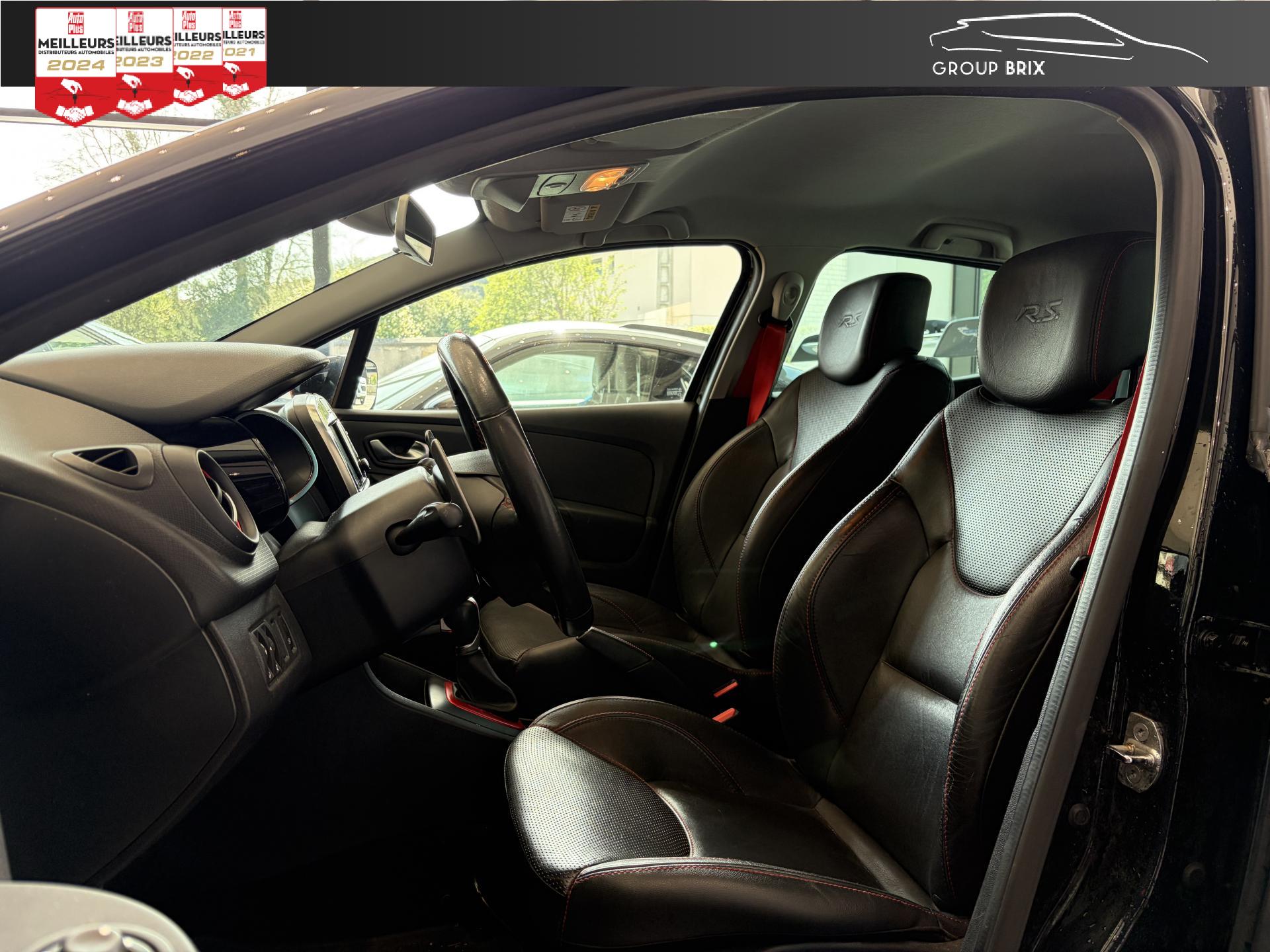 ABS avec aide au freinage d'urgenceAide au stationnement arrièreBadging R.S. sous logo de face avantBecquet spécifique R.SCeintures de sécurité rougesChâssis “Sport”Fond de compte-tours gris spécifique renault sportIndicateur de changement de vitessesR.S. drive (3 modes : normal, sport, race)Régulateur et limiteur de vitesseSeuil de porte aluminium avec marquage renault sportSiège conducteur réglable en hauteurVitres de custode et lunette arrière surteintéesVolant cuir spécifique Renault Sport avec surpiqûres Rouge et repère Rouge du Point Zéro