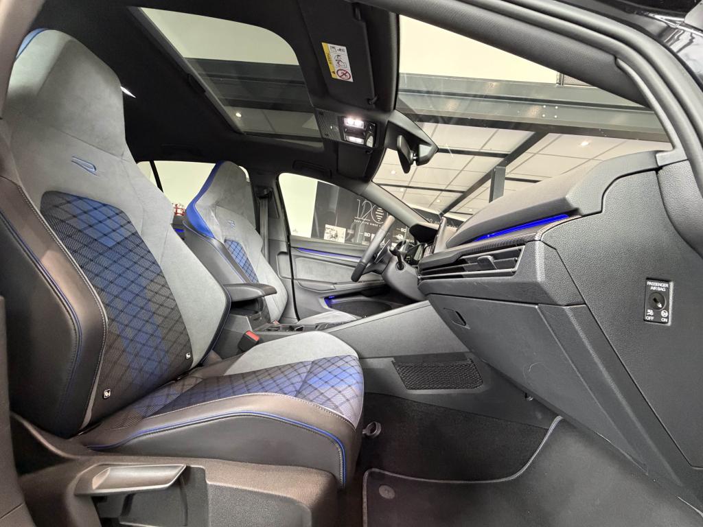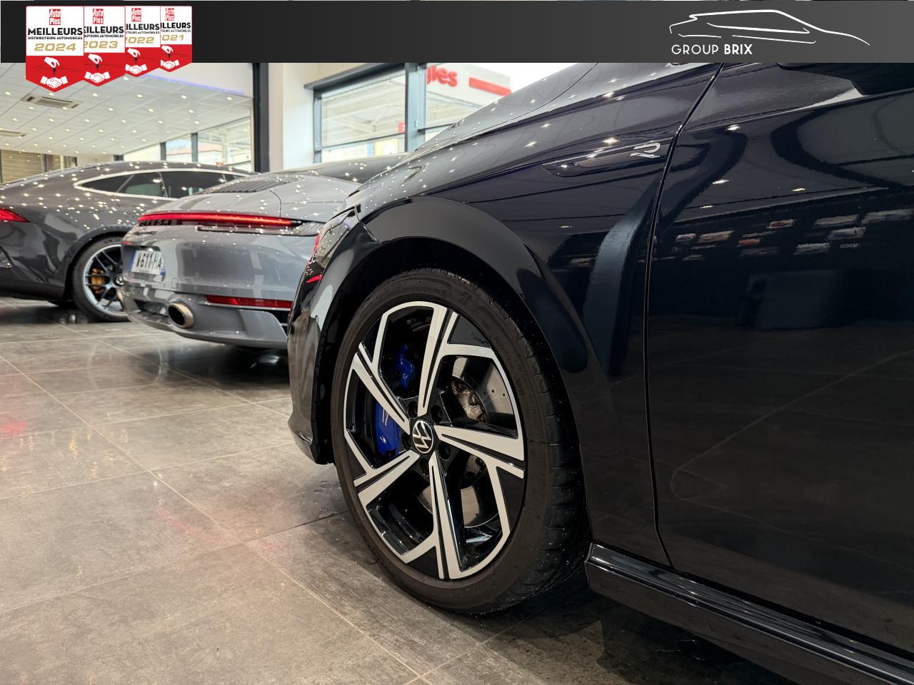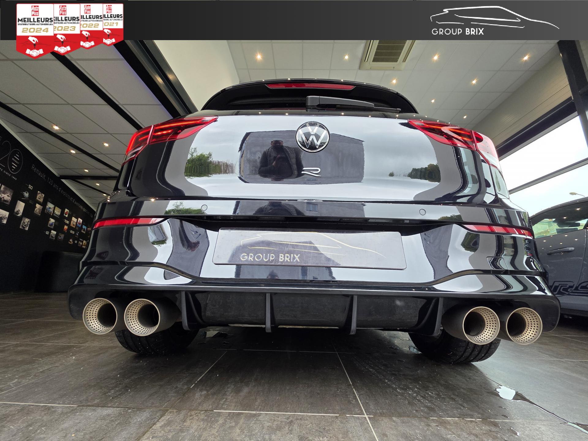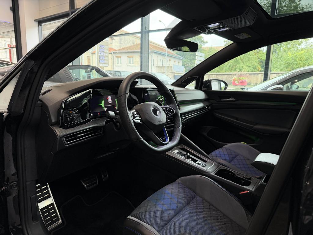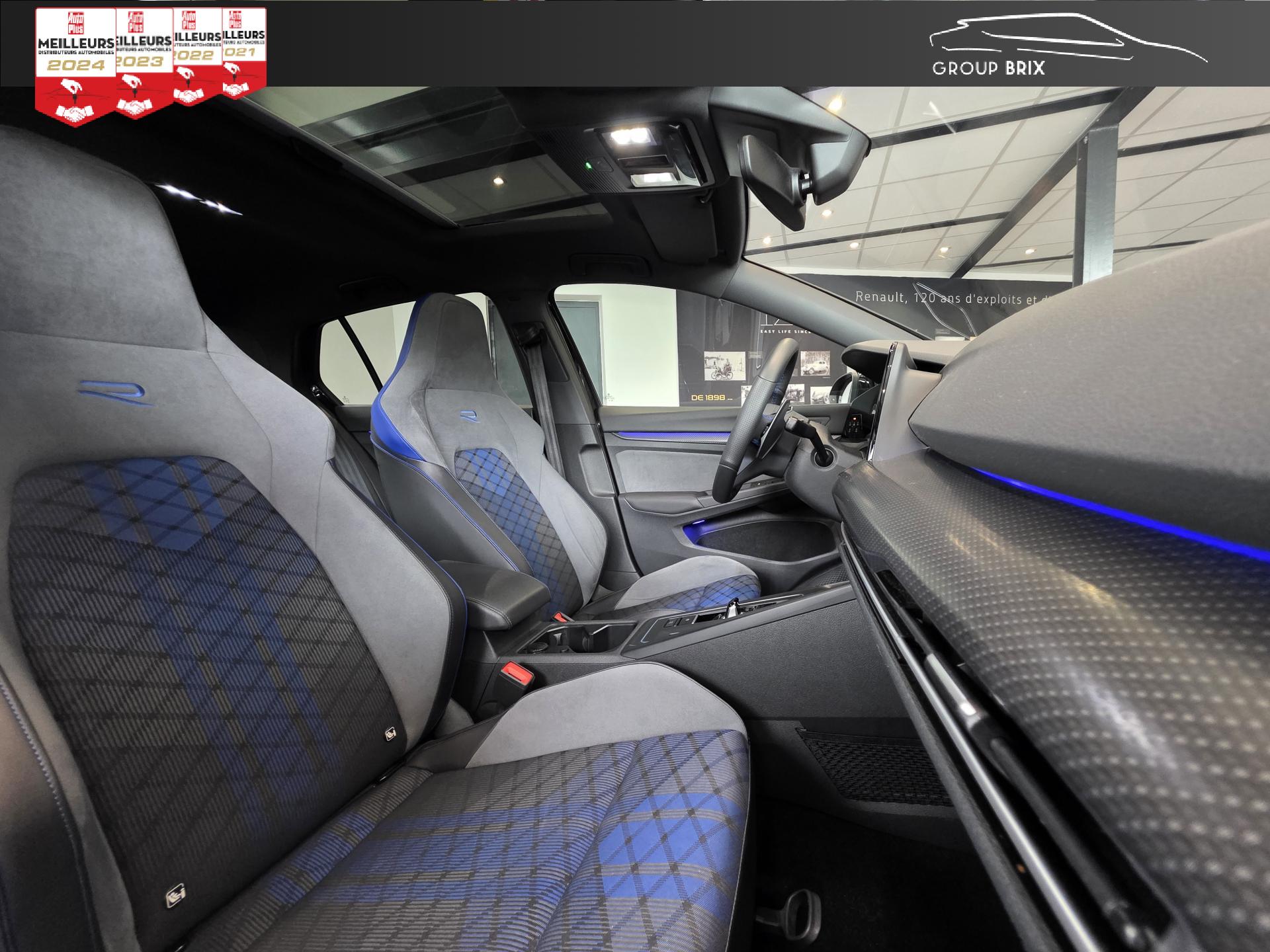App-Connect sans filApplications décoratives "Carbon Grey" pour le tableau de bord et les revêtements de porte à l'avantCâble adaptateur USB-C vers USB-ACiel de pavillon noir soulDigital Cockpit Pro avec ‘R-View’ permettant d’afficher : puissance, couple, pression de suralimentation, compte-tours et accélèromètreDirection progressive spécifique ‘R'Eclairage à LED de la plaque d'immatriculation arrièreEclairage d'ambiance - 30 couleurs et éclairage de plancher à l'avantMonogrammes ‘R’ sur la calandre et le hayon, badges ‘R’ sur les ailes avantPack visibilitéPare-chocs avant et arrière spécifiques ‘R'Park Assist : Système d'assistance au stationnement en créneau et en batailleParkPilot : Système d’aide au stationnement avant/arrière avec signaux sonores et visualisation de la distance des obstacles sur l’écranPédalier et repose-pied en acier inoxydable brosséProjecteurs IQ.Light - Matrix LEDRégulateur de vitesse adaptatif et prédictif 'ACC' jusqu’à l’arrêt completSélection du profil de conduiteSièges sport à l’avant spécifiques ‘R’ avec appuis-tête intégrés, sellerie en tissu ‘Sardegna’ et microfleece ‘ArtVelours'Sign Assist: Reconnaissance des panneaux de signalisation et affichage sur le ‘Digital Cockpit’ et l’écran du système de radionavigationTransmission ‘4MOTION’ avec repartition vectorielle de couple ‘R-Performance’XDS : Système agissant comme un différentiel autobloquant électronique permettant une meilleure motricité en courbe grâce à une répartition optimale de la puissance et du couple sur les roues avant