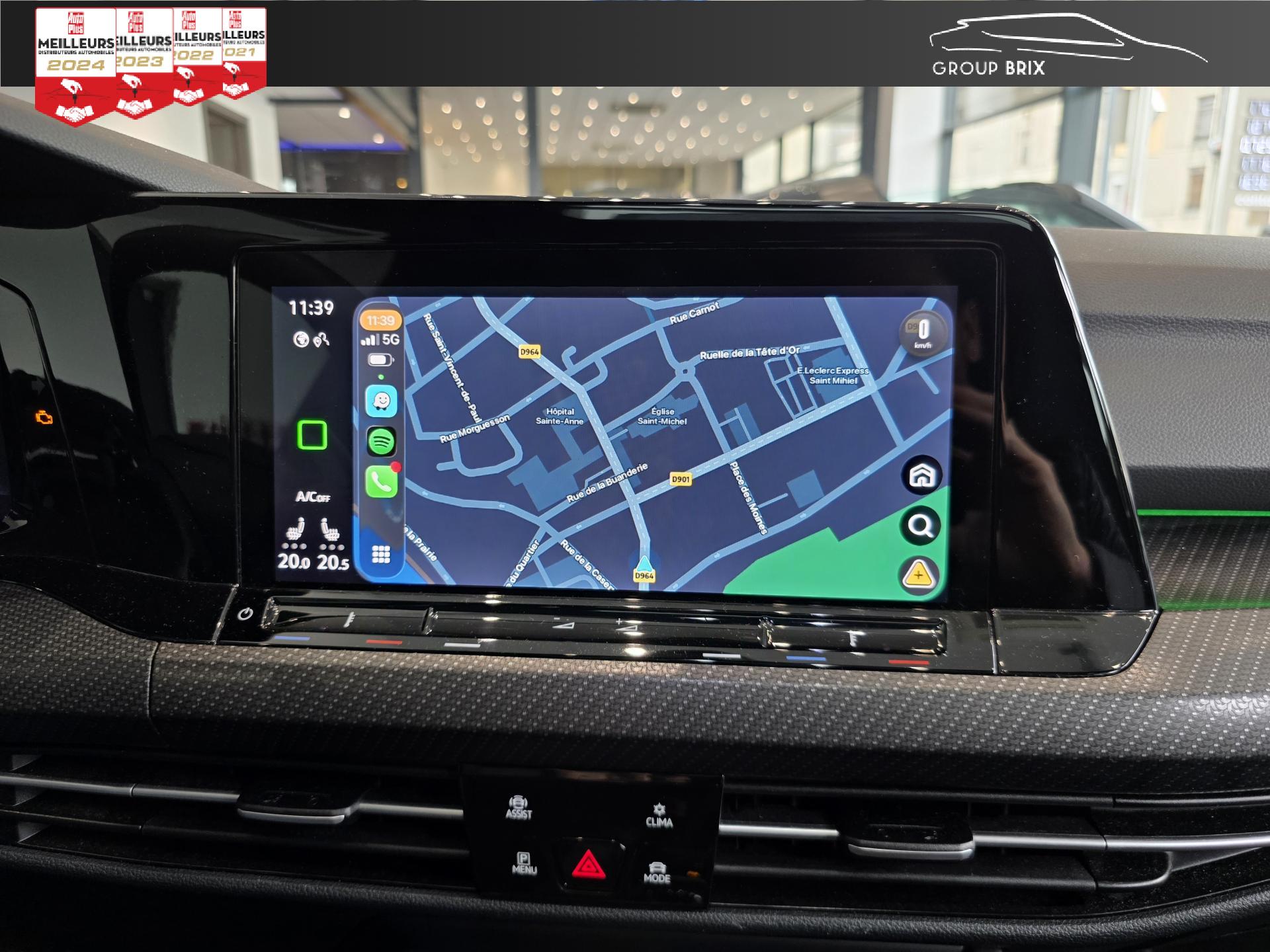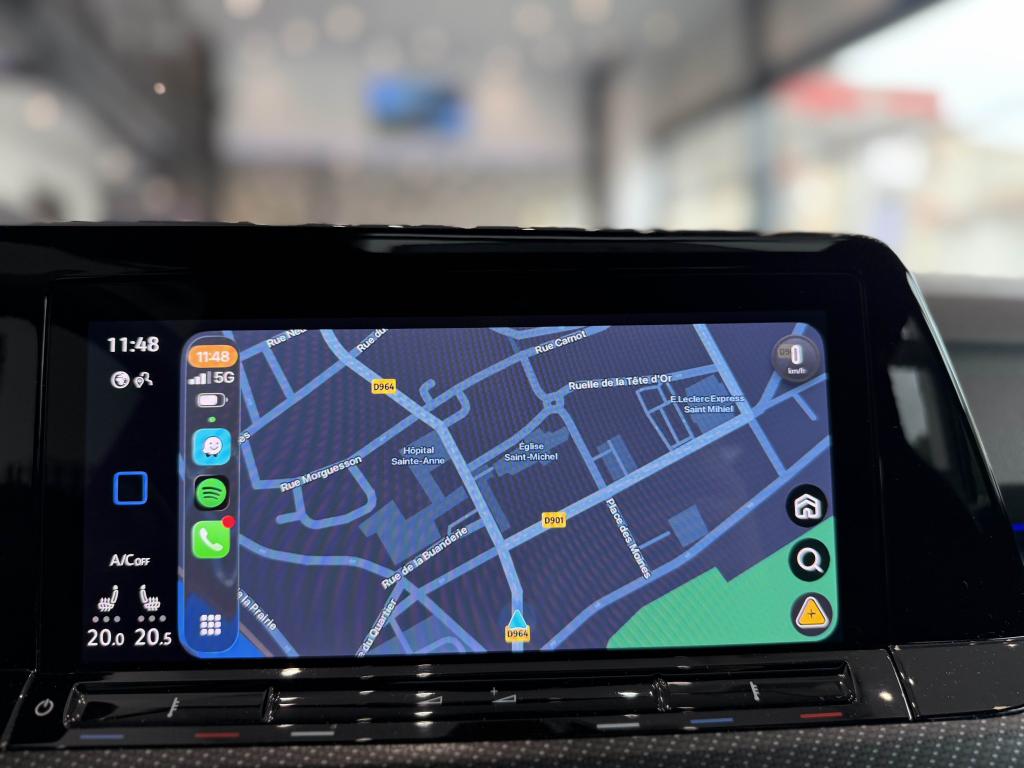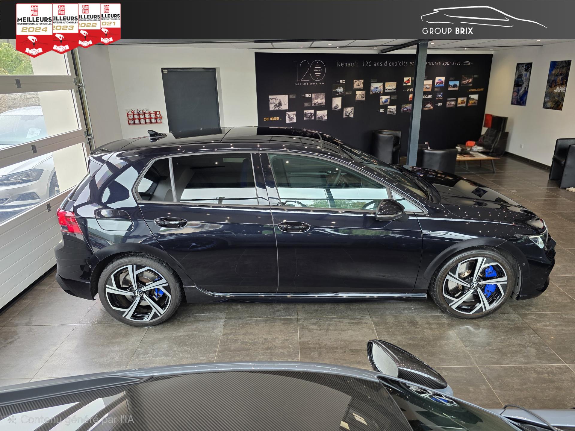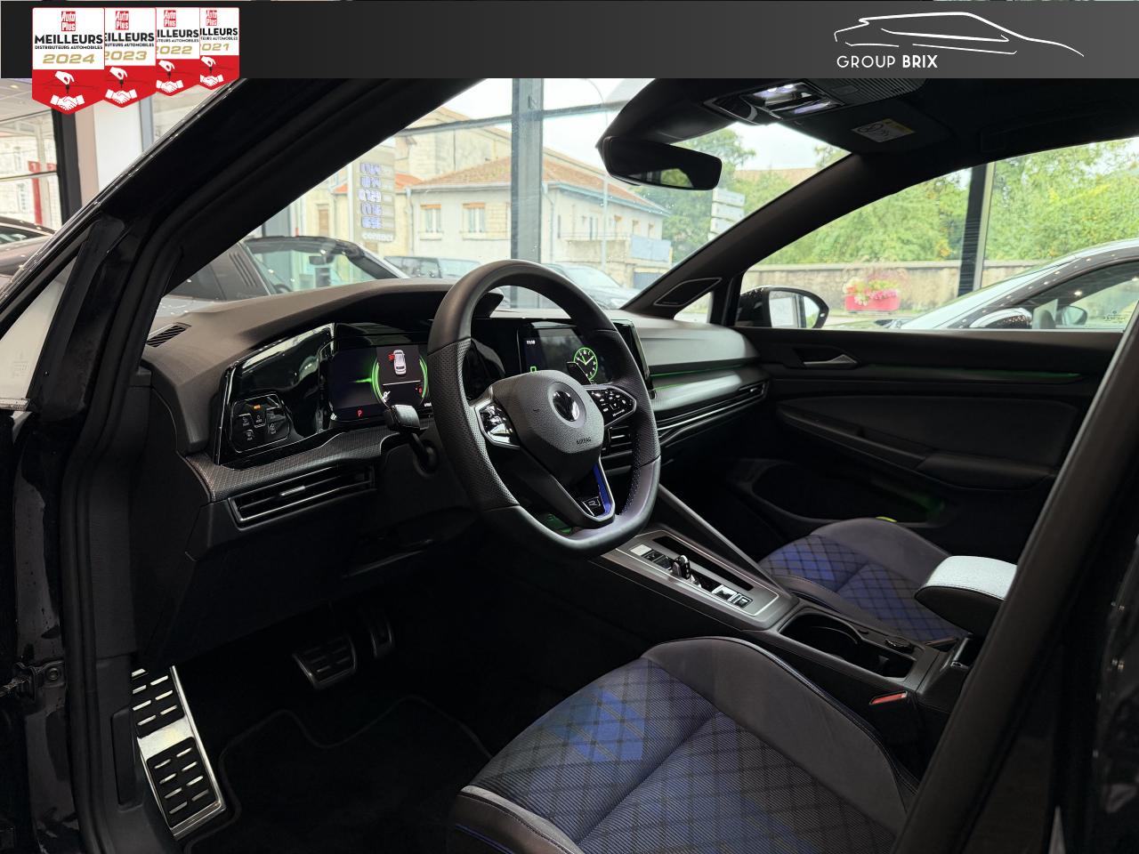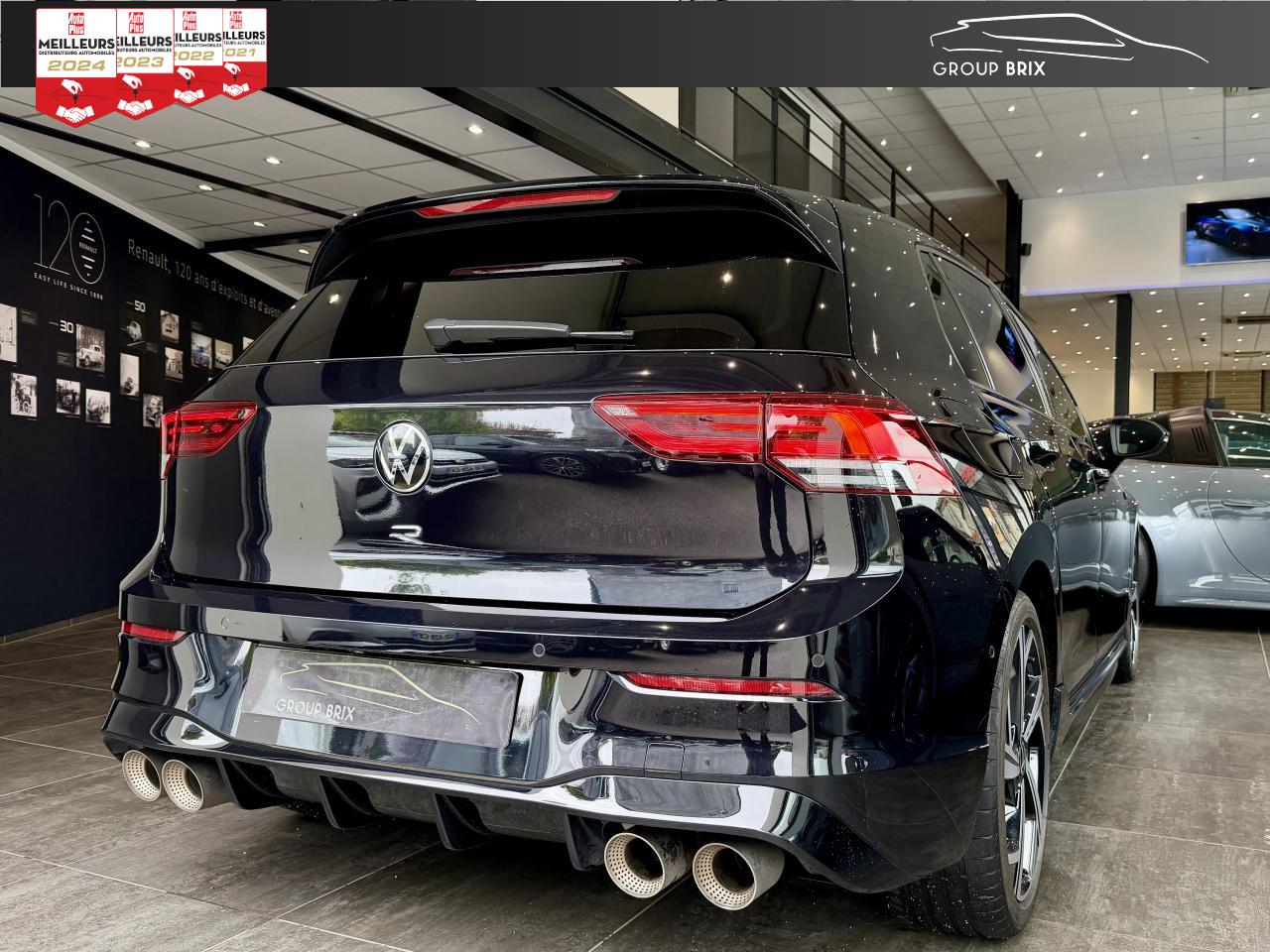 App-Connect sans filApplications décoratives "Carbon Grey" pour le tableau de bord et les revêtements de porte à l'avantCâble adaptateur USB-C vers USB-ACiel de pavillon noir soulDigital Cockpit Pro avec ‘R-View’ permettant d’afficher : puissance, couple, pression de suralimentation, compte-tours et accélèromètreDirection progressive spécifique ‘R'Eclairage à LED de la plaque d'immatriculation arrièreEclairage d'ambiance - 30 couleurs et éclairage de plancher à l'avantMonogrammes ‘R’ sur la calandre et le hayon, badges ‘R’ sur les ailes avantPack visibilitéPare-chocs avant et arrière spécifiques ‘R'Park Assist : Système d'assistance au stationnement en créneau et en batailleParkPilot : Système d’aide au stationnement avant/arrière avec signaux sonores et visualisation de la distance des obstacles sur l’écranPédalier et repose-pied en acier inoxydable brosséProjecteurs IQ.Light - Matrix LEDRégulateur de vitesse adaptatif et prédictif 'ACC' jusqu’à l’arrêt completSélection du profil de conduiteSièges sport à l’avant spécifiques ‘R’ avec appuis-tête intégrés, sellerie en tissu ‘Sardegna’ et microfleece ‘ArtVelours'Sign Assist: Reconnaissance des panneaux de signalisation et affichage sur le ‘Digital Cockpit’ et l’écran du système de radionavigationTransmission ‘4MOTION’ avec repartition vectorielle de couple ‘R-Performance’XDS : Système agissant comme un différentiel autobloquant électronique permettant une meilleure motricité en courbe grâce à une répartition optimale de la puissance et du couple sur les roues avant