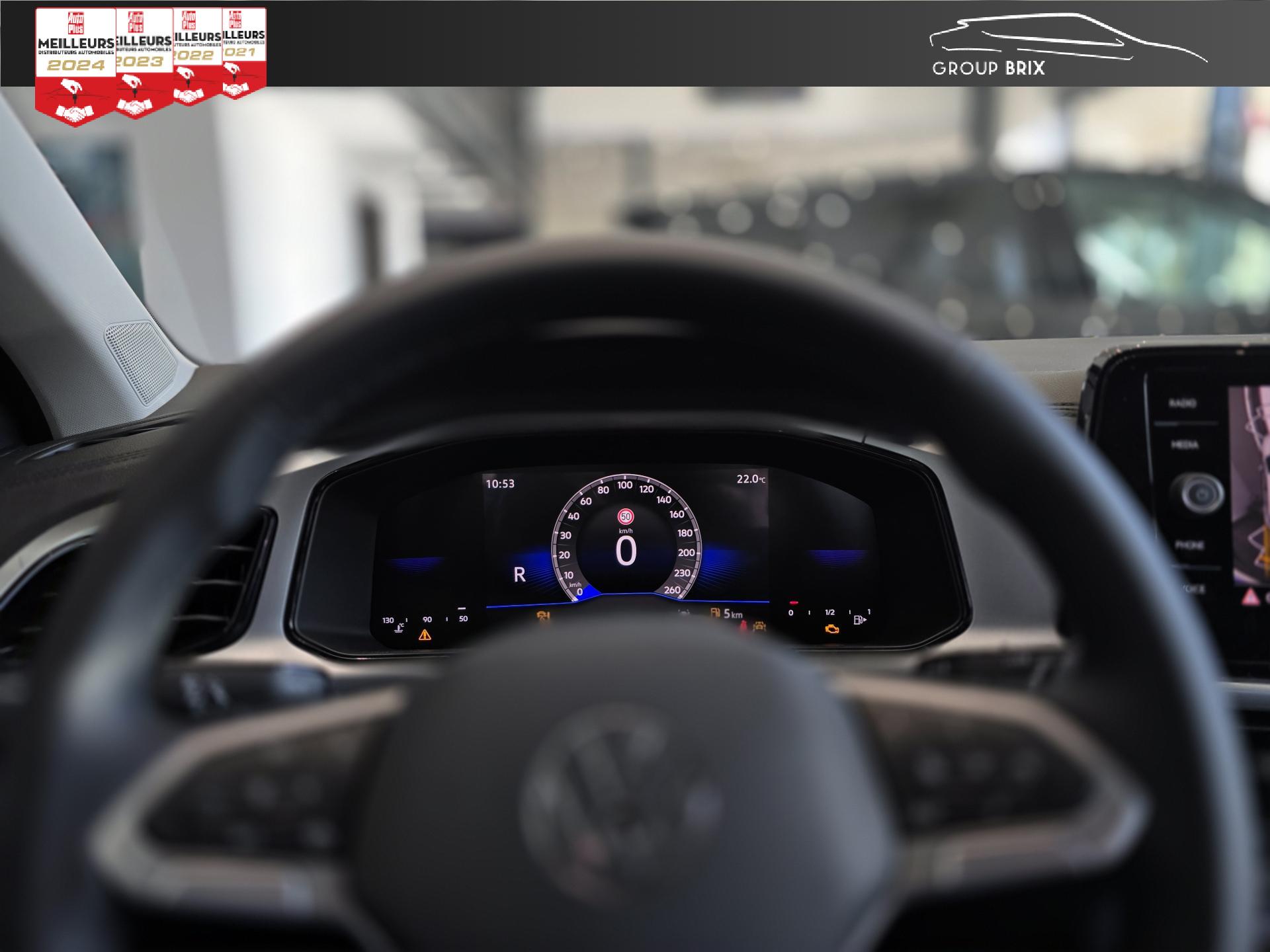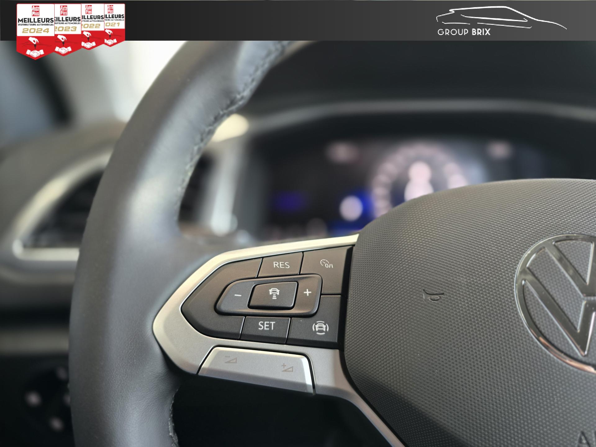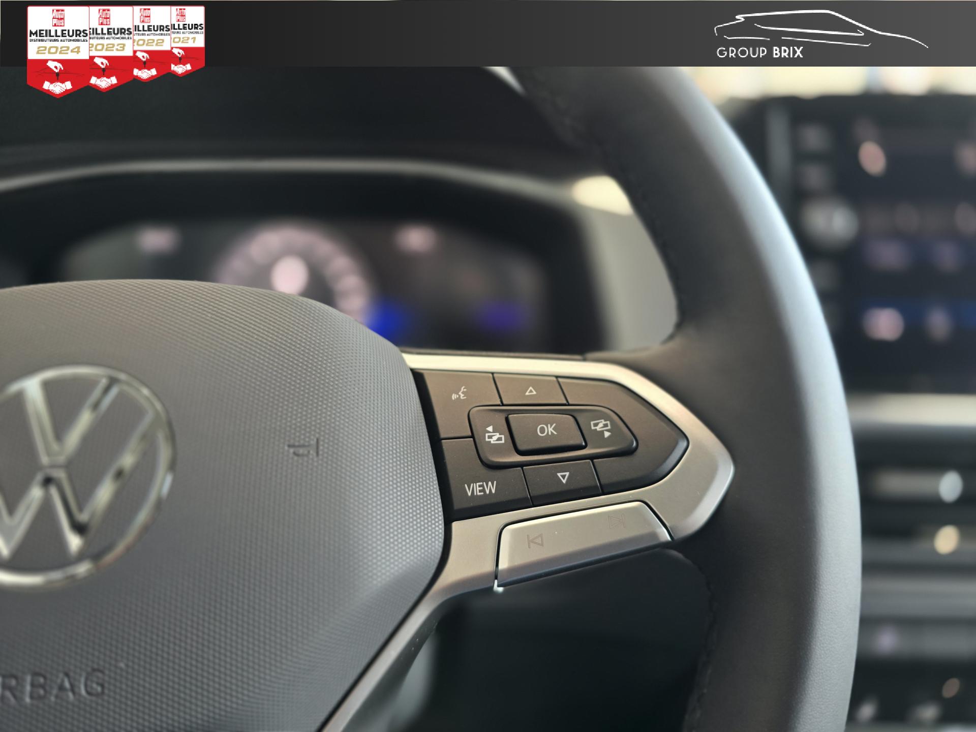 ‘Fatigue Detection' : Système de détection de fatigue du conducteur qui analyse le comportement du conducteur et recommande un temps de repos par l'apparition d'un message visuel et sonoreApp-Connect sans filCommutation automatique des feux de croisement et de route, Light AssistCompartiment de rangement pour manuel d’utilisation sous siège conducteurDigital Cockpit : combiné d’instruments entièrement digital de 8”Ecran couleur tactile 8"Frein de stationnement électromécanique avec fonction d'immobilisation en pente ‘Auto-Hold'Keyless Access : Système de verrouillage/déverrouillage sans clé et démarrage avec bouton start/stopLane Assistant : assistant de maintien dans la voiePack VisibilitéPark AssistPeintures métalliséesPréparation pour services connectés “VW Connect”Projecteurs antibrouillard avant avec éclairage statique d'intersectionProjecteurs avant LED PlusSellerie en tissu “Tracks Uni new” Noir Titane / GrisSystème EDL : blocage électronique de différentielTapis de sol avant et arrièreVolant capacitif en cuir multifonction